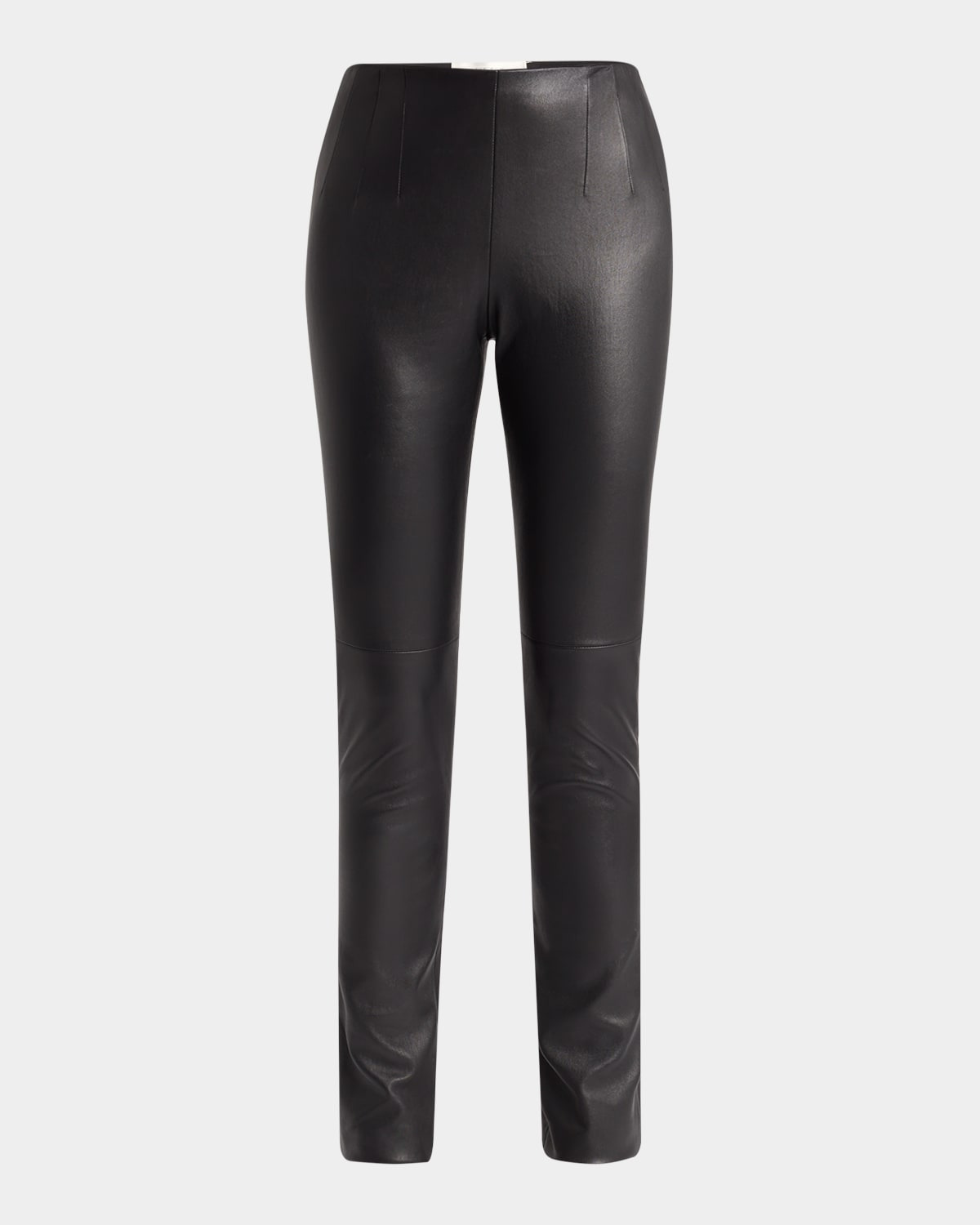 Lakun Leather Skinny-Leg Slit-Hem Pants