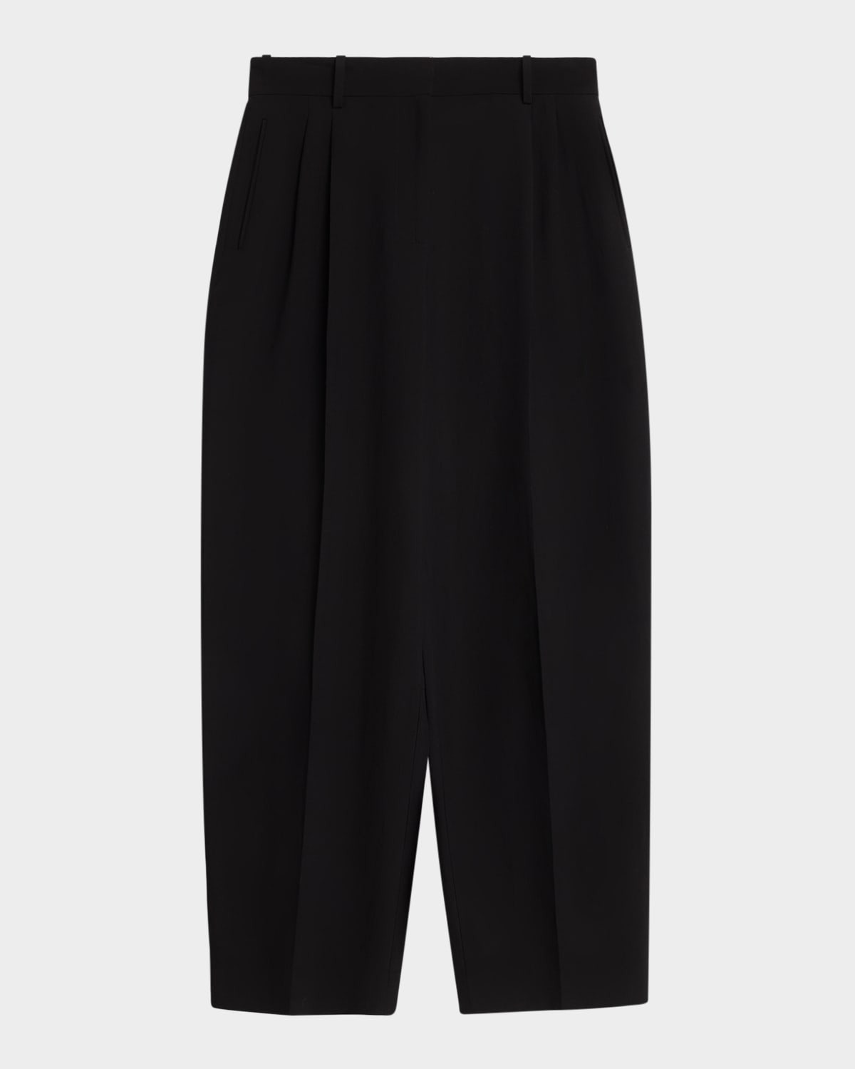 - THE ROW "Lilas" pants featuring a double pleated front - Mid rise sits high on the hip - Side slip pockets; back button-welt pockets - Straight legs - Full length - Hook/zip fly; belt loops - Wool/linen/nylon/polyamide - Made in Italy