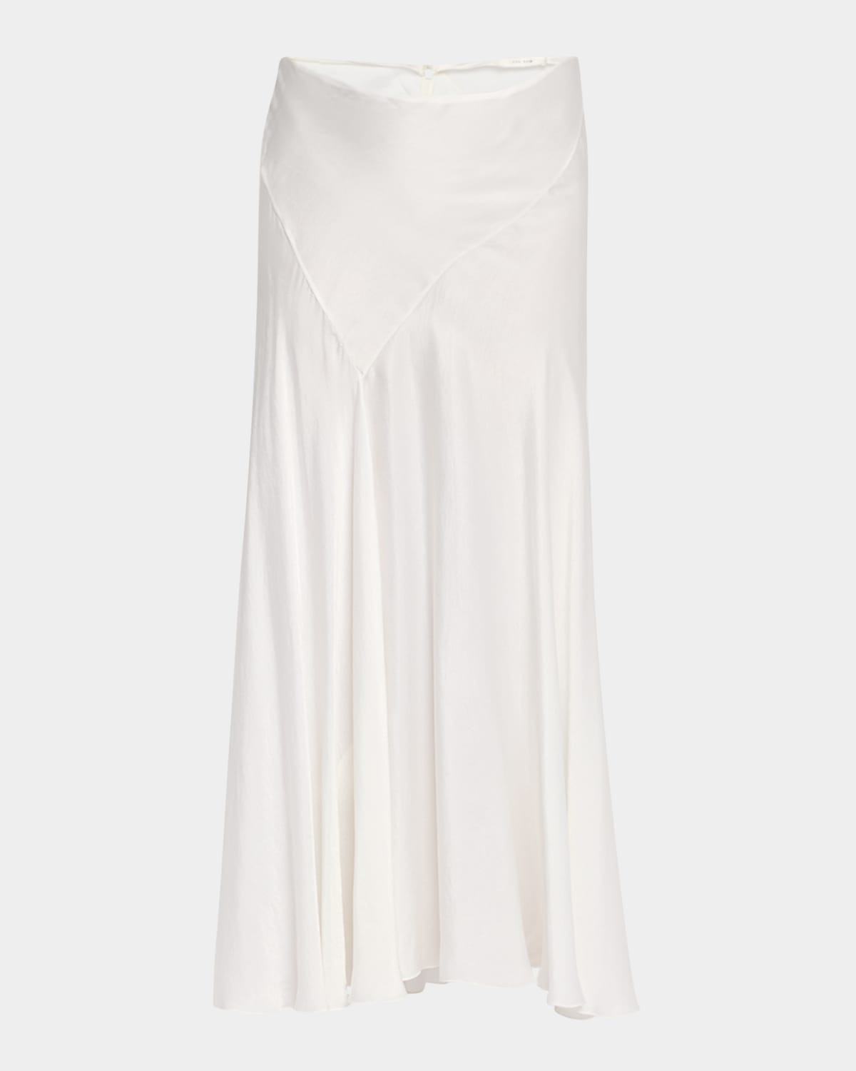 - THE ROW "Luce" washed cupro maxi skirt with asymmetric paneling - High rise - A-line silhouette - Hem falls below the knee - Center back zip - Cupro - Silk lining - Dry clean - Made in Italy