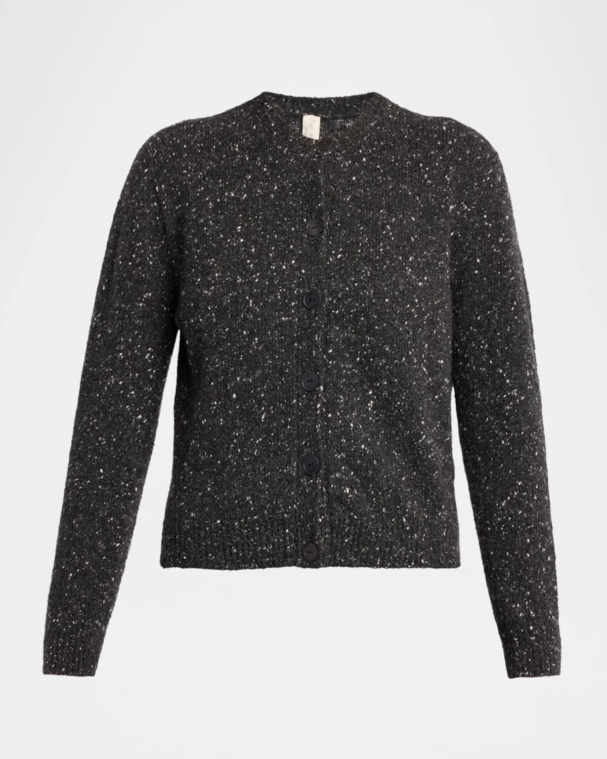 THE ROW "Mauino" cardigan is crafted of a warm speckled cashmere knit Crew neckline; button front Long sleeves Relaxed fit Hip length Ribbed cuffs and hem Cashmere Made in Italy