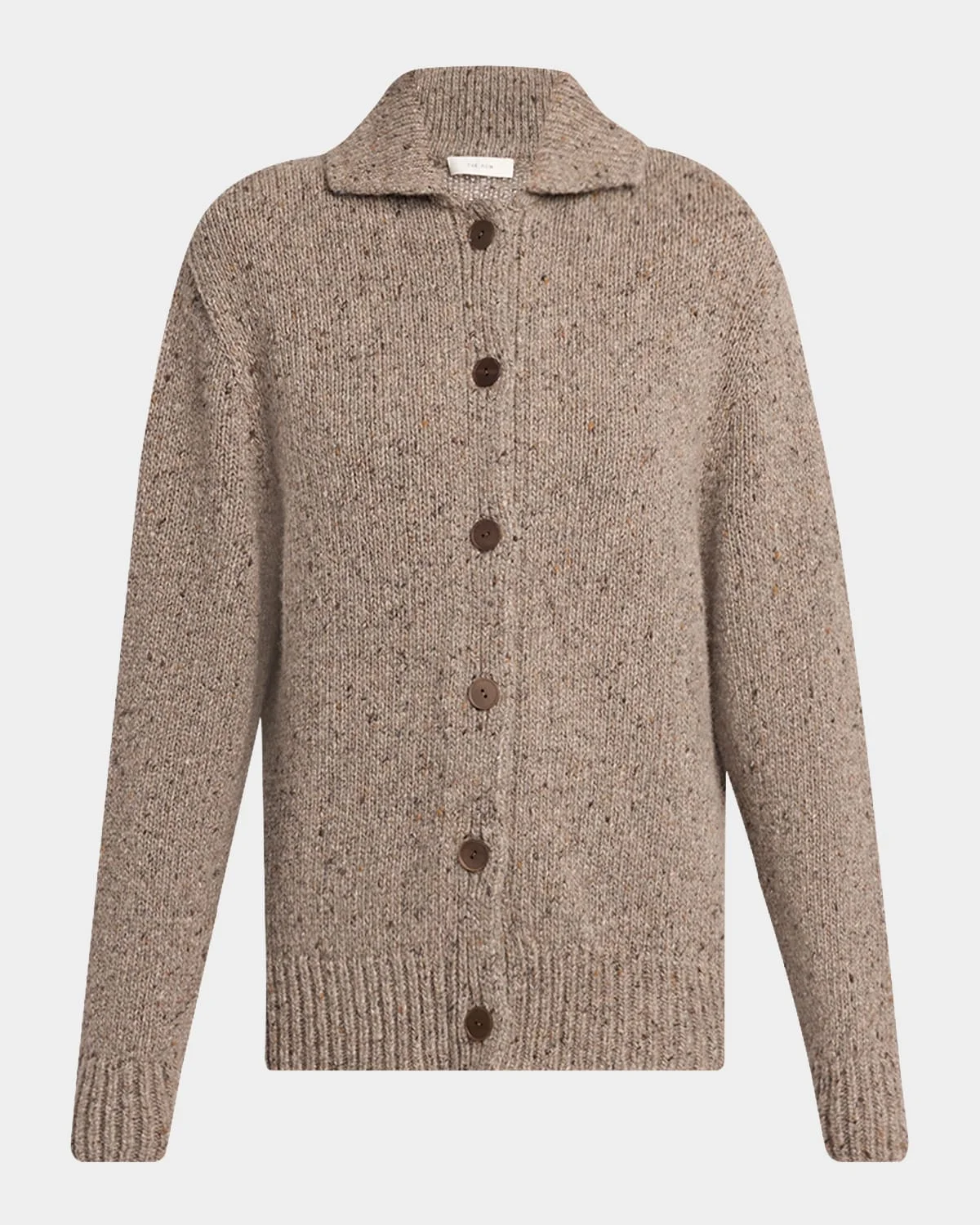 THE ROW "Mauri" cardigan is crafted of a speckled cashmere knit Spread collar; button front Long sleeves Relaxed fit Ribbed cuffs and hem Cashmere Made in Italy