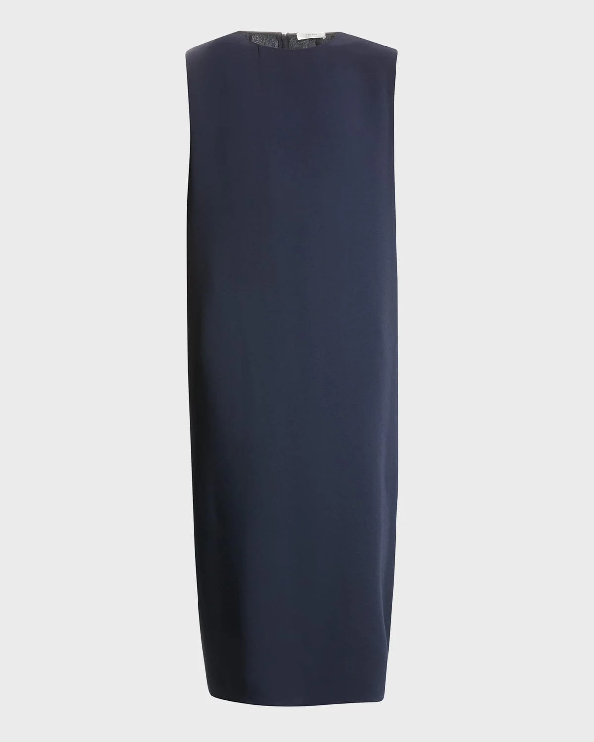 "Mirna" dress by THE ROW. Approx. 43.5"L from shoulder to hem (size S). High, round neckline. Sleeveless. Side slip pockets. Straightcut silhouette. Back zip and vent. Hem falls below the knee. Triacetate/polyester. Dry clean. Made in Italy.