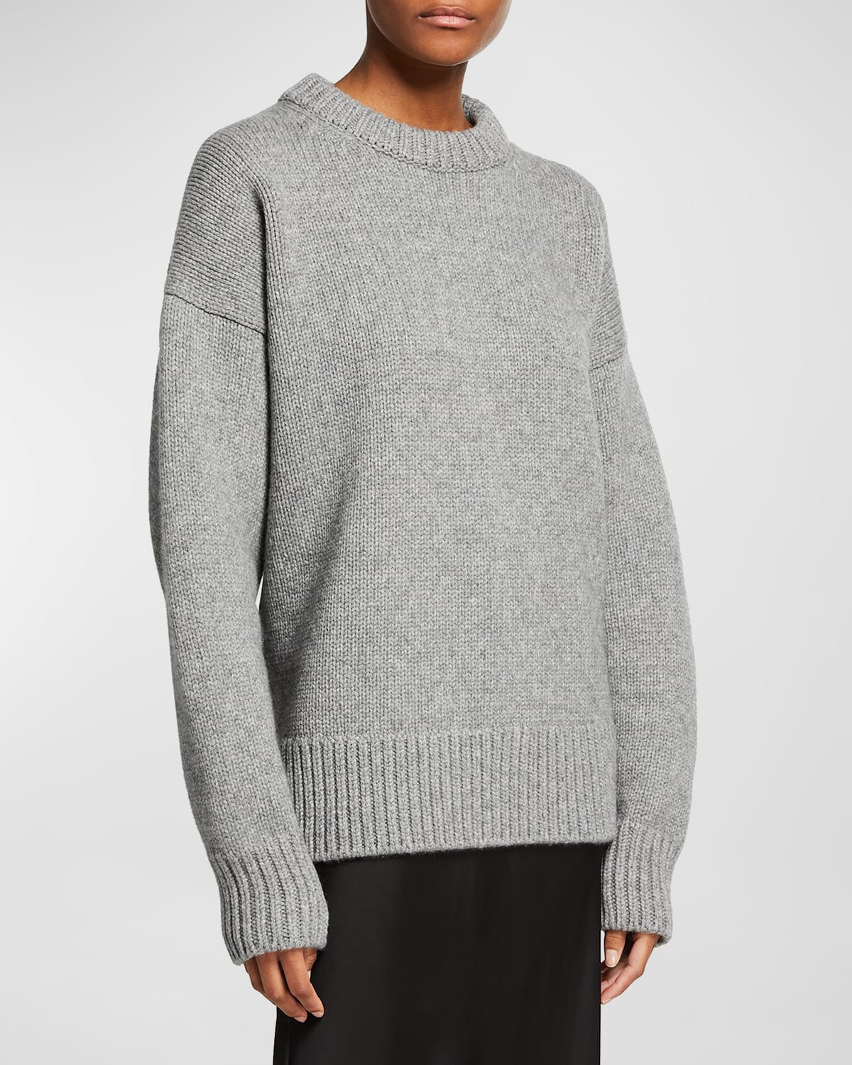 THE ROW "Ophelia" knit top Crew neckline Long, dropped sleeves Ribbed trim Oversized fit Pullover style Wool/cashmere Made in Italy
