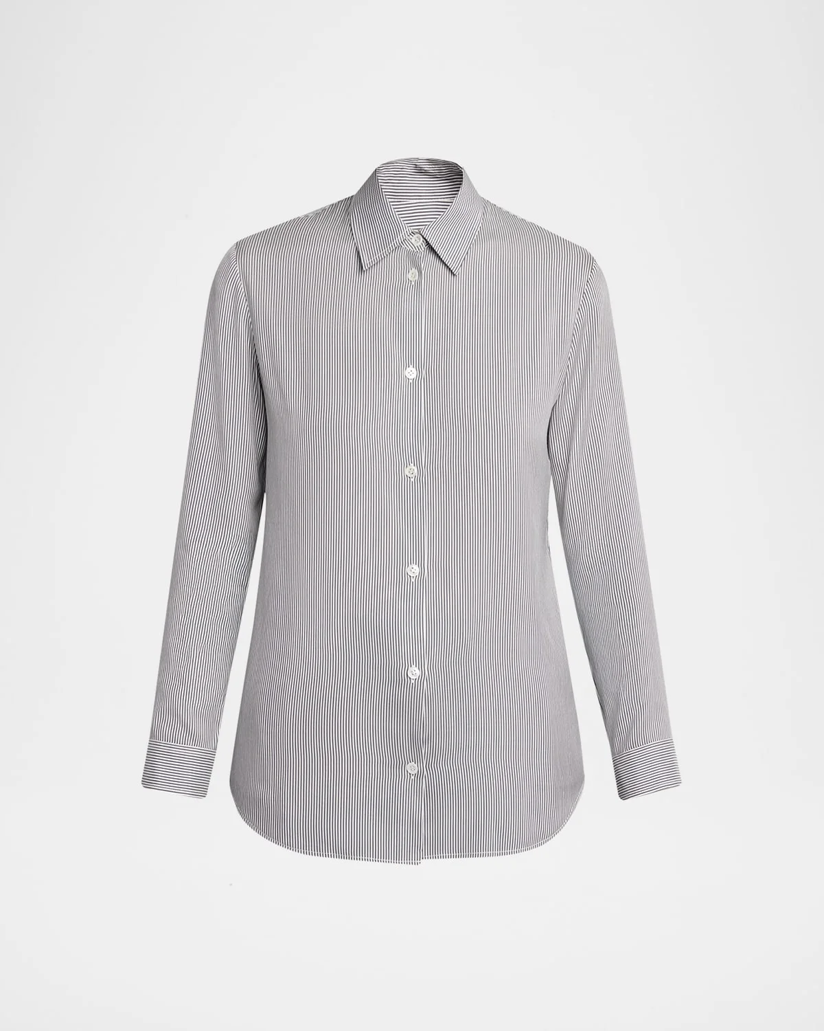 THE ROW "Petra" shirt is crafted of a crisp silk poplin with a striped print Point collar; button front Long sleeves; button cuffs Slim fit Shirttail hem Silk Made in Italy