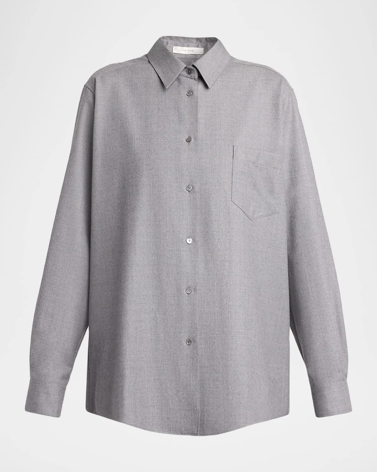 THE ROW "Pino" shirt in woolblend Point collar; button front Long sleeves; button cuffs Chest patch pocket Loose fit Virgin wool/silk Made in Italy