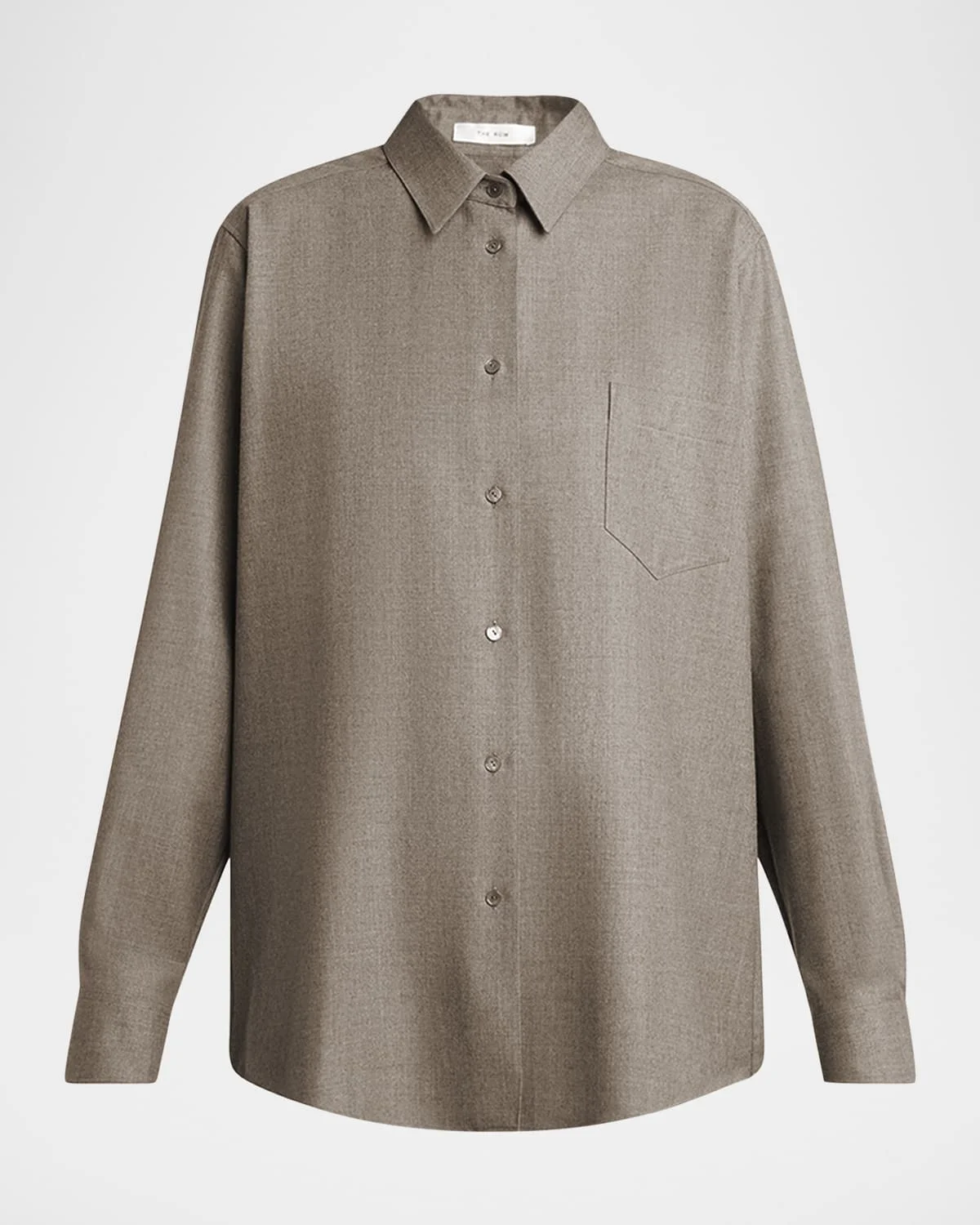 - THE ROW "Pino" shirt in wool-blend - Point collar; button front - Long sleeves; button cuffs - Chest patch pocket - Loose fit - Virgin wool/silk - Made in Italy