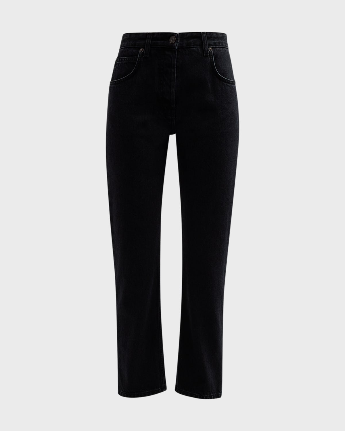 THE ROW "Riaco" jeans Mid rise sits high on hip Flat front Fivepocket style Slim straight legs Cropped lengtgh Button/zip fly; belt loops Polyester/cotton Made in Italy