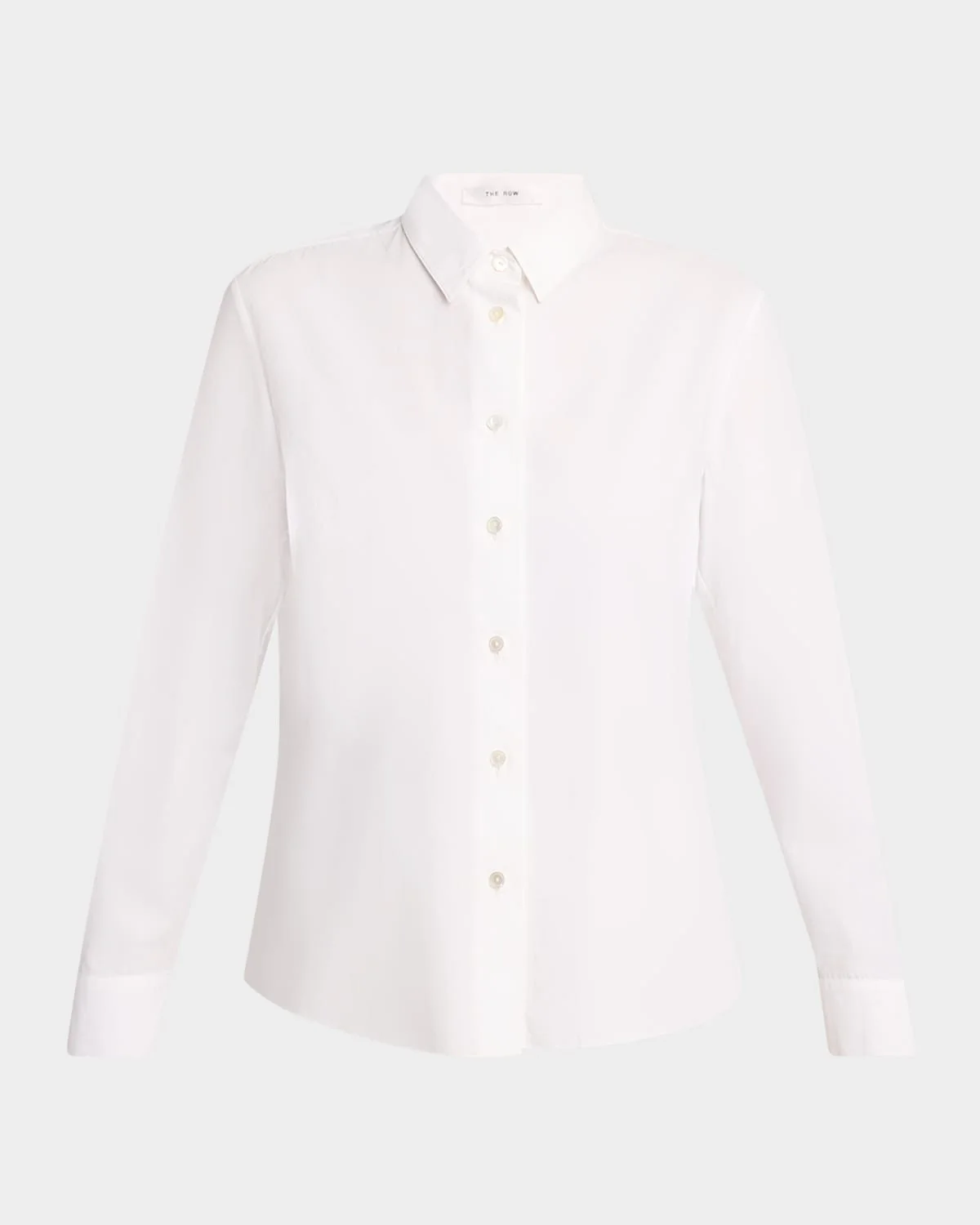 THE ROW "Sadie" shirt is crafted of a crisp cotton poplin Point collar; button front Long sleeves; button cuffs Yoked back Relaxed fit Shirttail hem Cotton Made in Italy