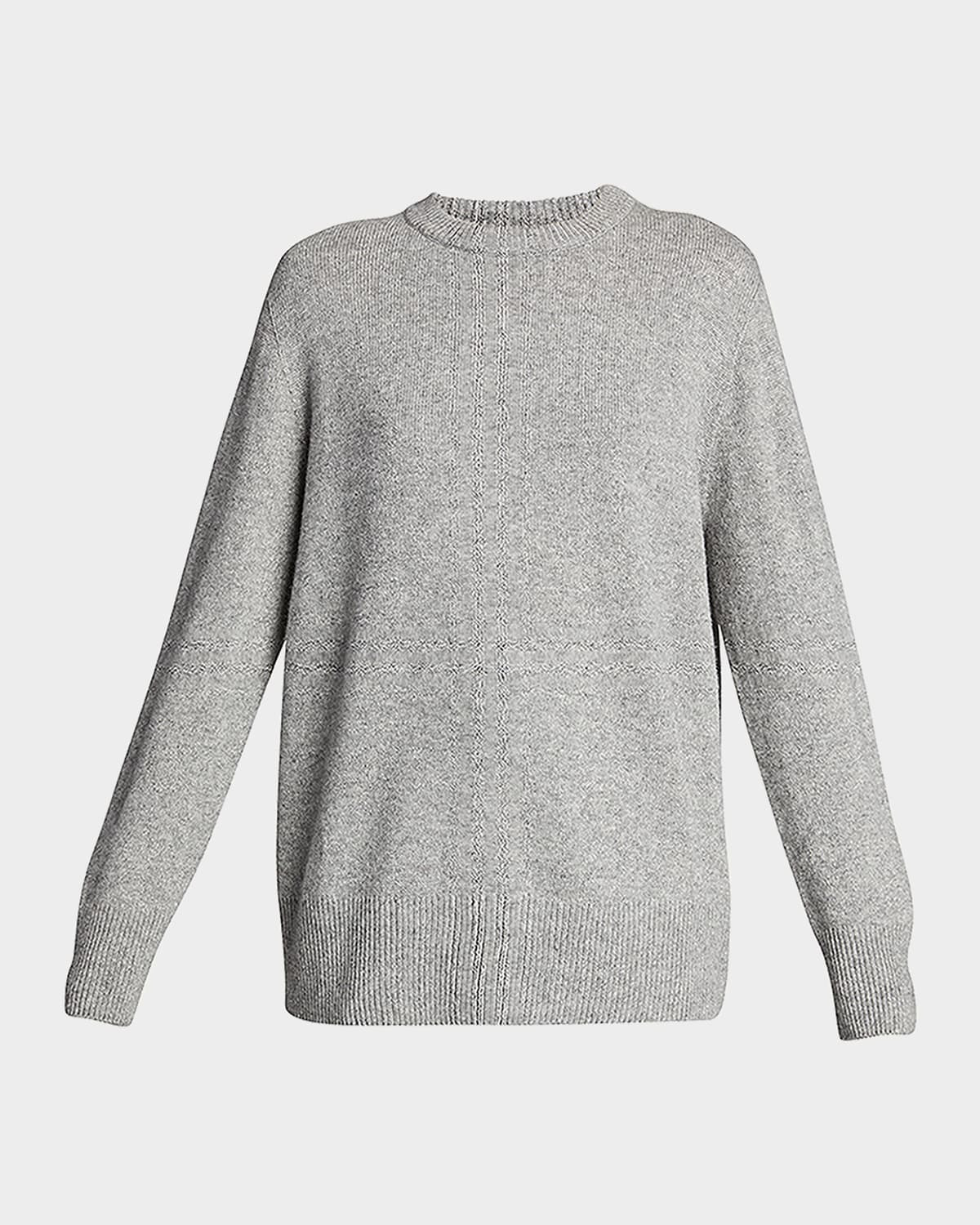 THE ROW "Sibem" knit sweater Approx. 25"L from shoulders to hem Crew neckline Long sleeves Dropped shoulder Relaxed fit Ribbed trim Pullover style Wool/cashmere Dry clean Made in Italy