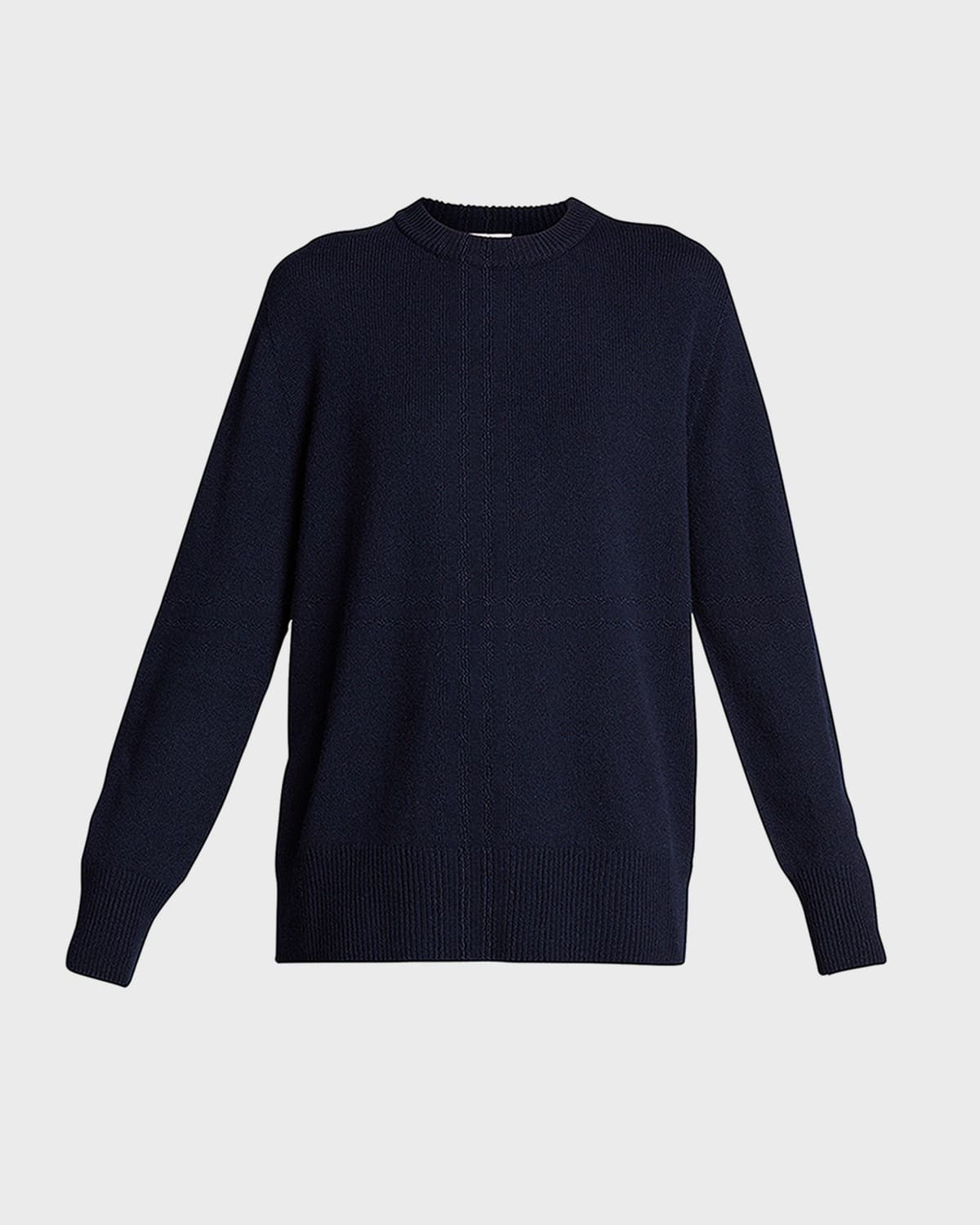 THE ROW "Sibem" knit sweater Approx. 25"L from shoulders to hem Crew neckline Long sleeves Dropped shoulder Relaxed fit Ribbed trim Pullover style Wool/cashmere Dry clean Made in Italy