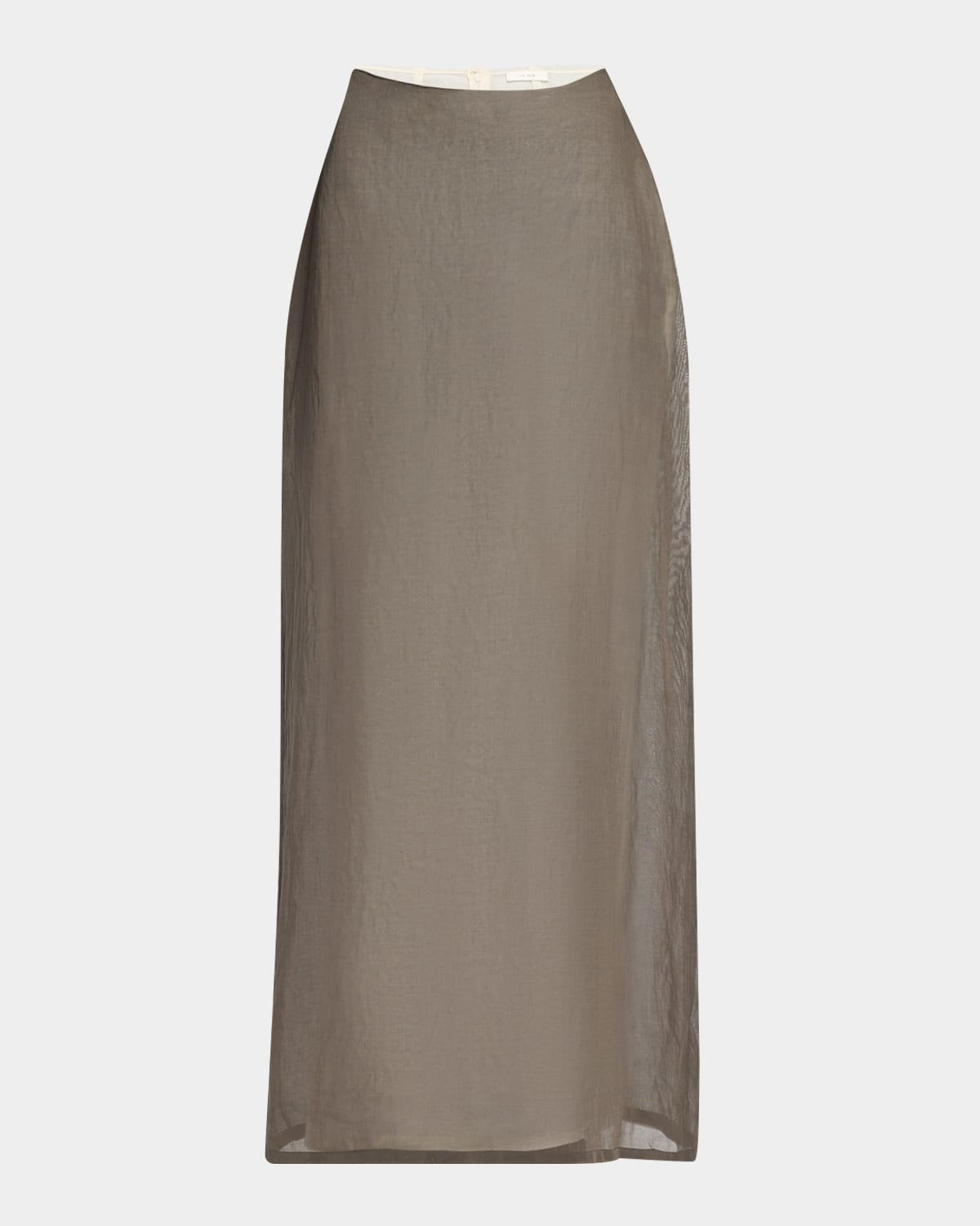 - THE ROW "Zaira" layered skirt with a raw waist edge - High waist - Full length - Skirt falls straight from hip to hem - Center-back slit hem - Back zip - Cotton - Made in Italy