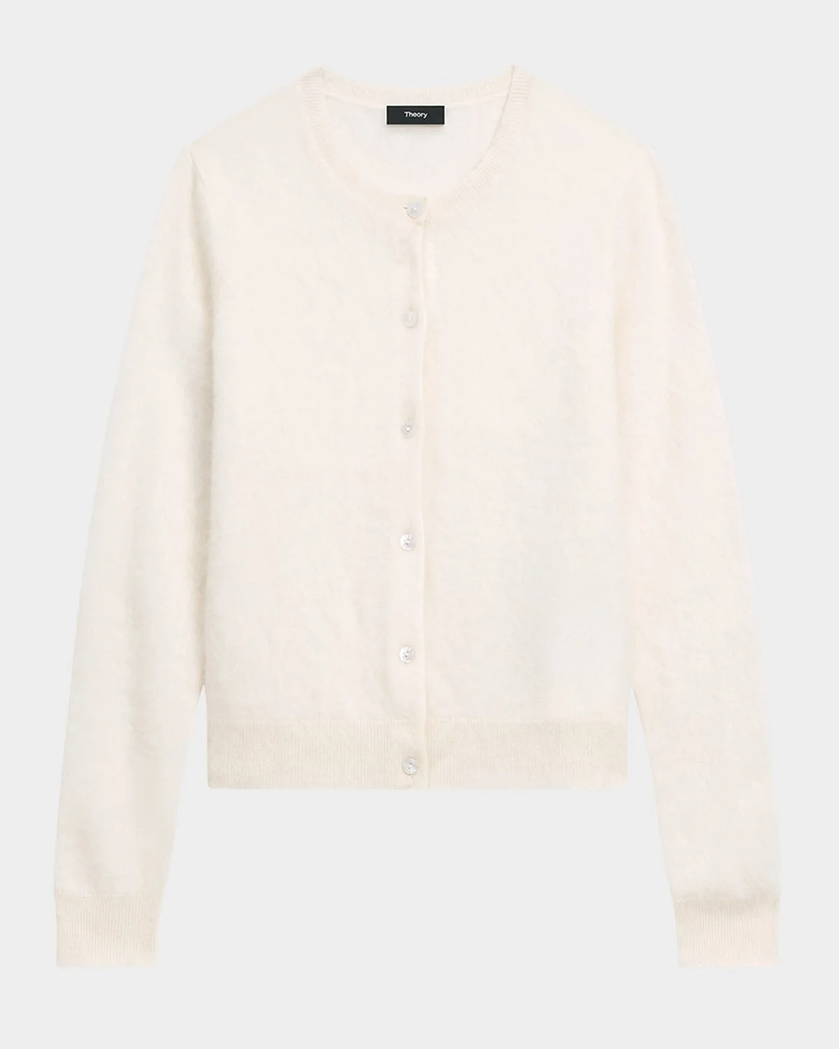 Luxurious cashmere cardigan by Theory. Crew neckline Long sleeves Slim fit Hem sits at the hip Buttonfront Cashmere Dry clean Imported