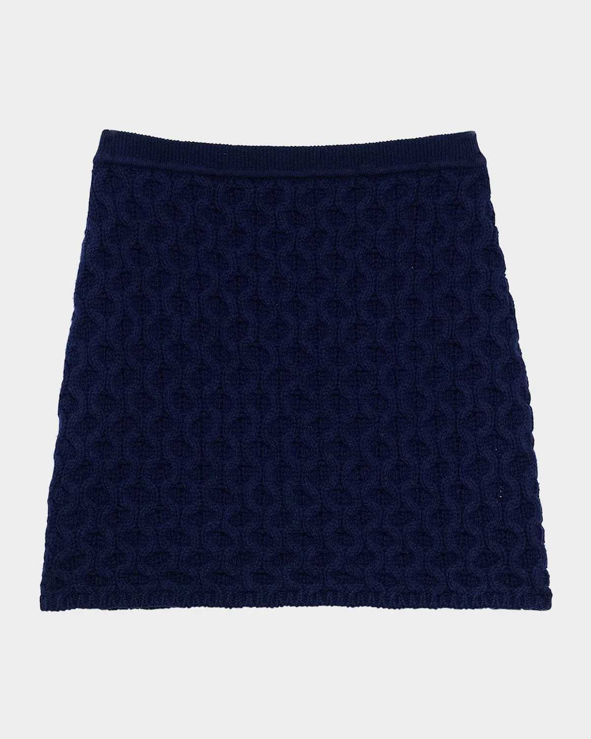 - Theory cable-knit mini skirt in felted wool-cashmere - Mid-rise; sits high on the hip - Elastic waistband - Skirt falls straight from hip to hem - Hem falls above the knee - Pull-on style - Wool/cashmere - Imported - Model is 5'10"/177cm.