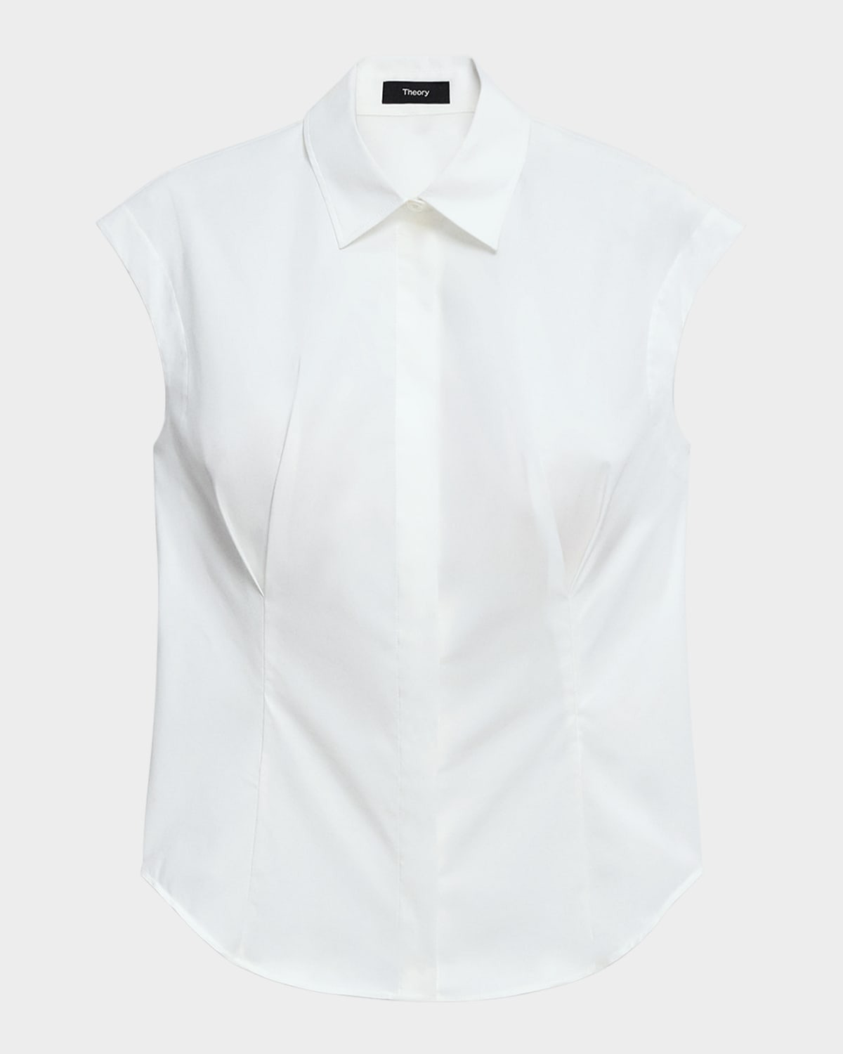 - Theory cotton-blend shirt - Point collar - Cap sleeves - Cinched waist - Rounded hem - Concealed button-front - Cotton/nylon/polyamide/Lycra® spandex - Imported