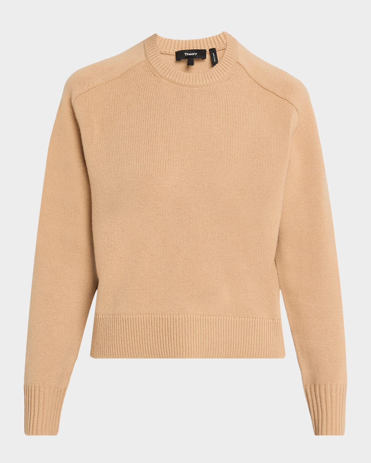 - Theory easy sweater with tapered sleeves and a ribbed finish - Approx. 20"L from shoulder to hem - Crew neckline - Long sleeves - Hip length - Relaxed fit - Pullover style - Cashmere - Dry clean - Imported - Model is 5'10"/177cm.