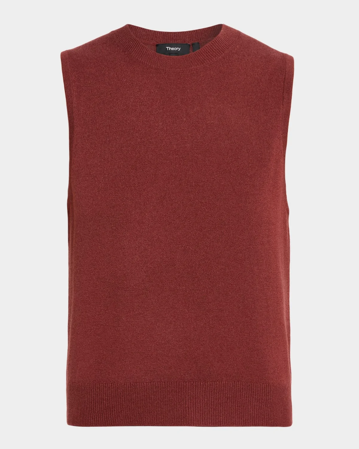 Theory cashmere shell top with a ribbed edge finish Approx. 20.8"L from shoulder to hem Crew neckline Sleeveless Slim fit Pullover style Cashmere Dry clean only Imported