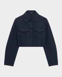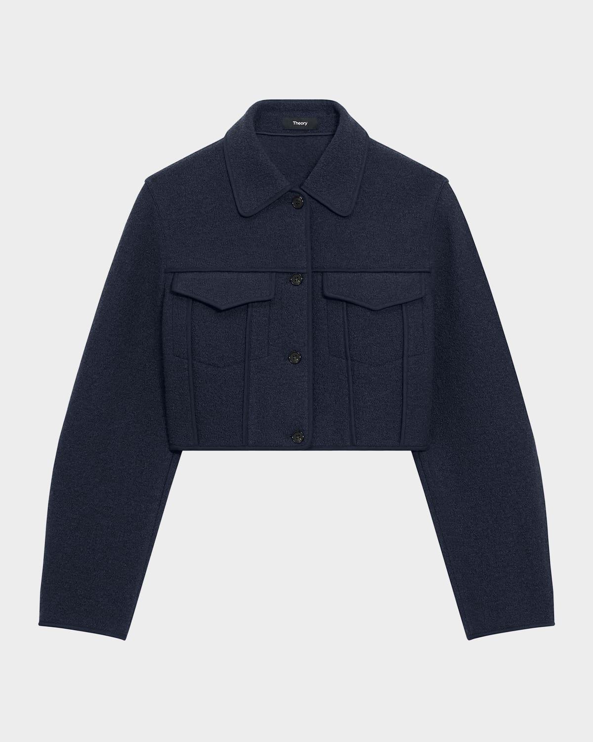 - Theory mod boucle trucker jacket with classic seam details - A cropped trucker jacket in mod boucle with classic seam details and pockets at front. - Spread collar; button front - Long sleeves - Chest flap-buttoned pockets - Straight fit - Cropped length - Wool - Dry clean - Imported - Model is 5'10"/177cm.