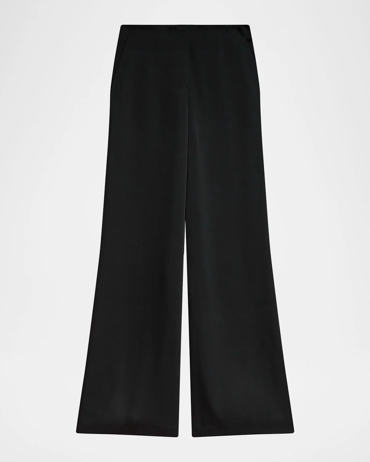 Luxe satin pants by Theory. High rise Fourpocket style Wide legs Full length Hook/zip fly Triacetate/polyester Dry clean Imported