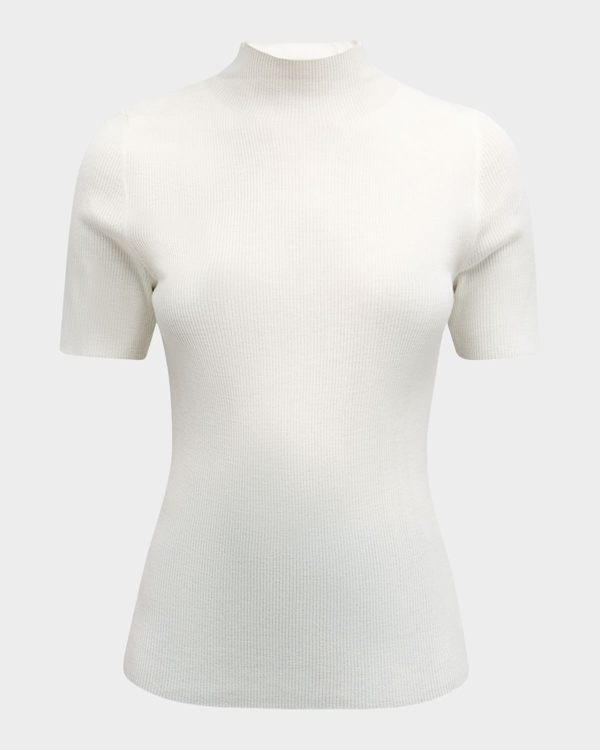 Leenda Regal Merino Wool Short-Sleeve Mock-Neck Top