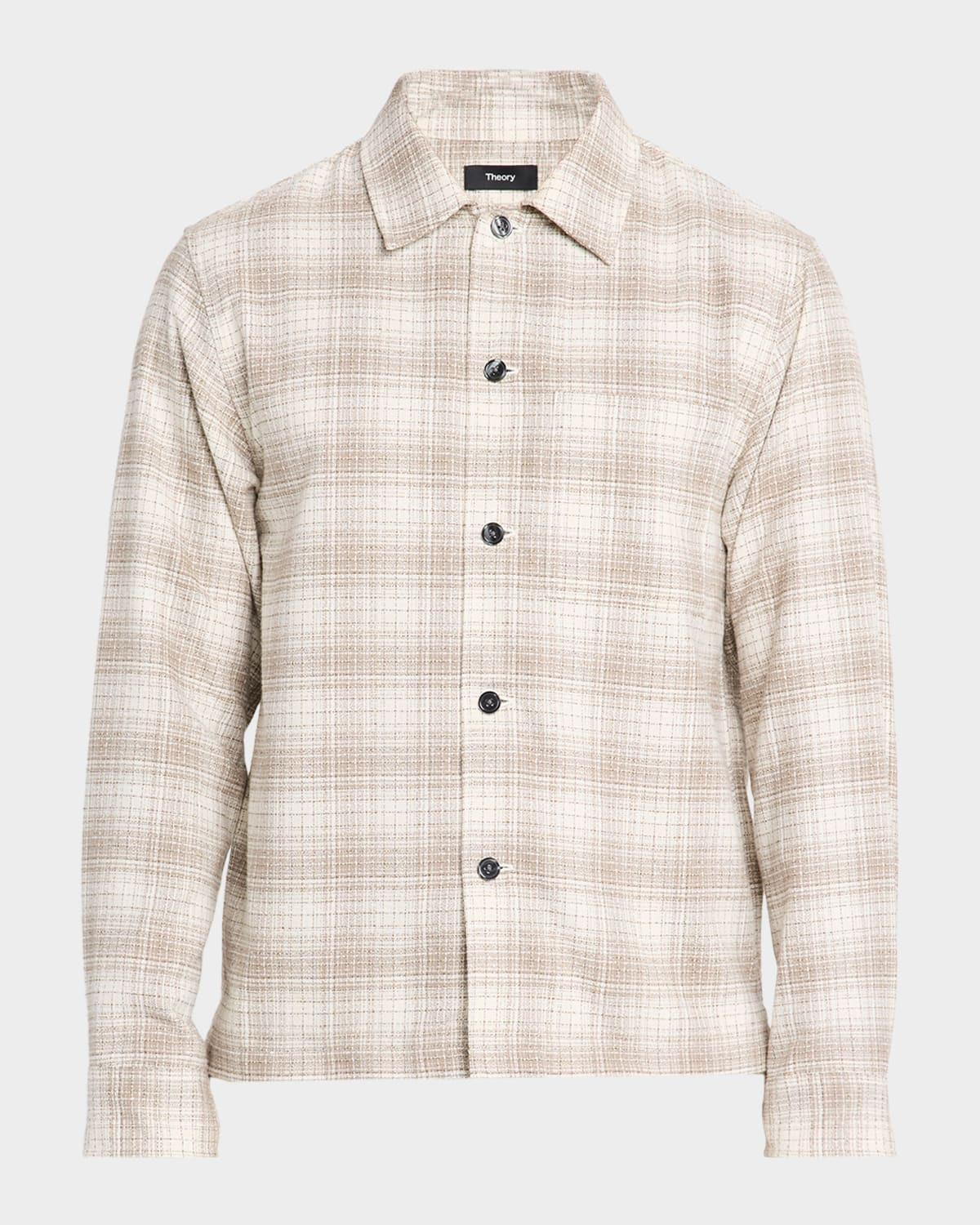 - Theory shirt featuring a check motif - Point collar; button front - Long sleeves; button cuffs - Chest patch pocket - Regular fit - Curved hem - Button closure - Cotton - Dry clean - Imported