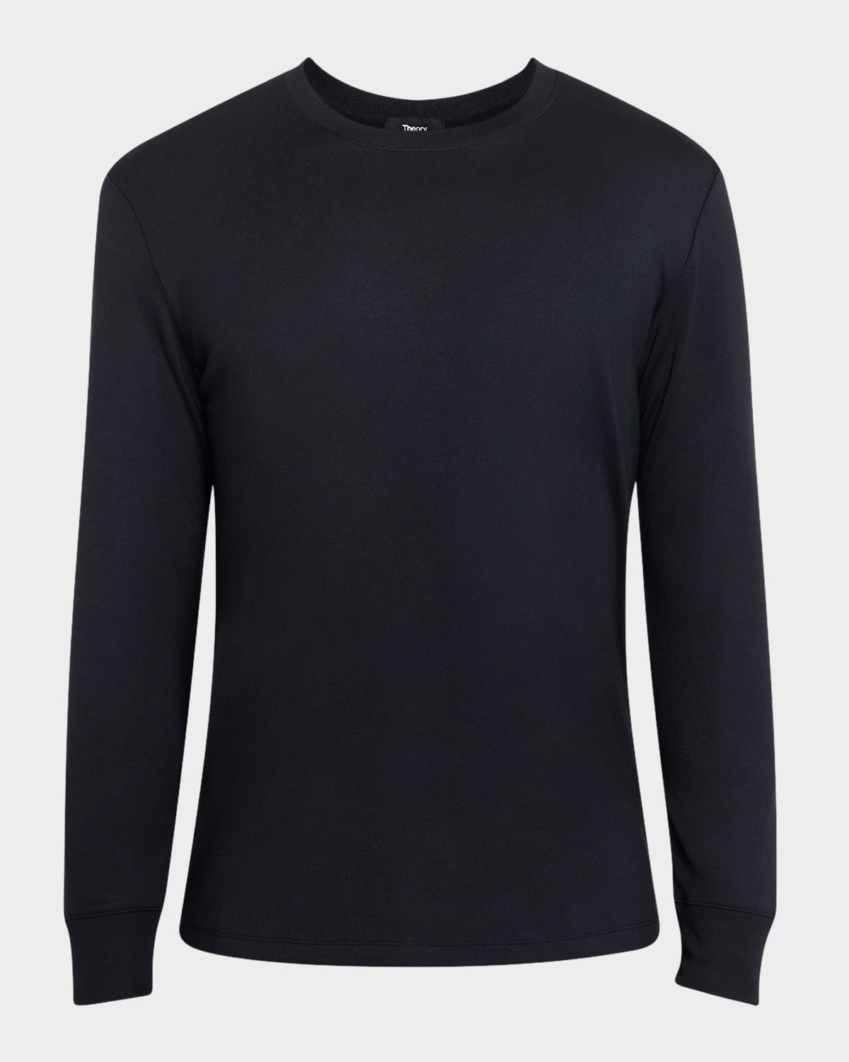 - Theory "Essential" T-shirt in lightweight jersey knit - Crew neckline - Long sleeves - Banded cuffs - Classic fit - Pullover style - Modal/polyester/spandex - Machine wash - Imported - Model is 6'1"/185cm.