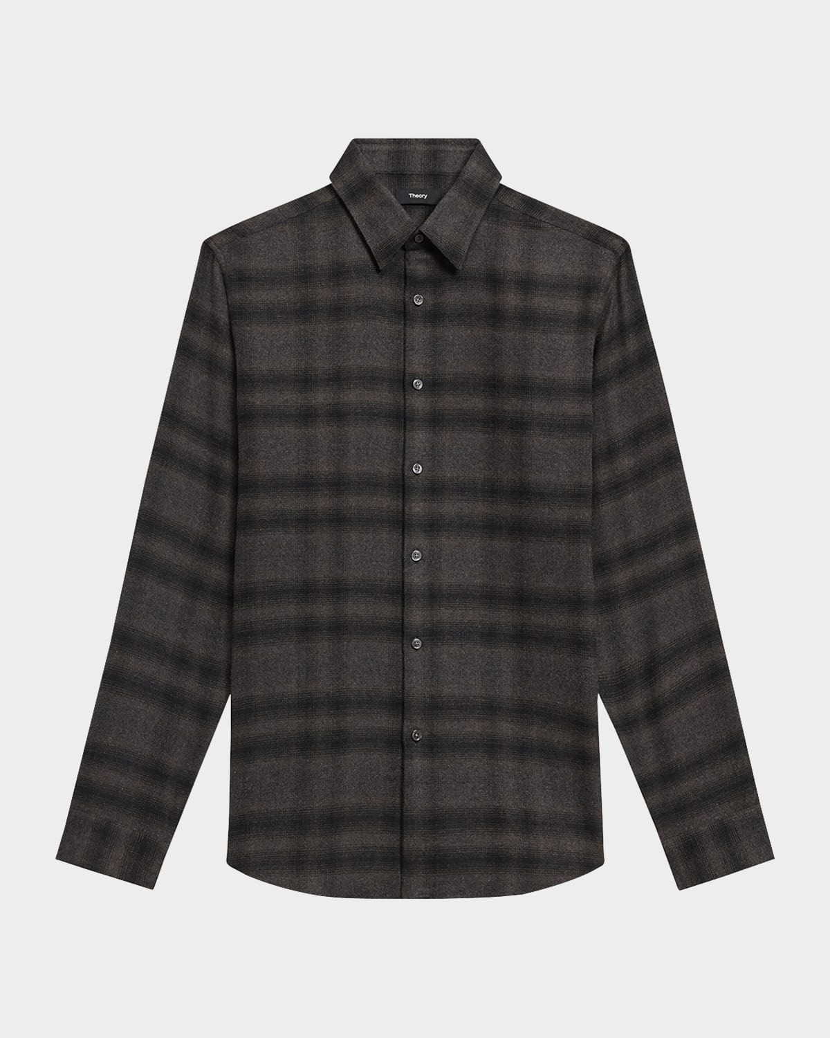 - Theory "Irving" sport shirt in soft plaid - Spread collar - Button placket - Long sleeves - Classic fit - Curved hem - Cotton - Dry clean, machine wash cold, line dry - Imported - Model is 6'1"/185cm.