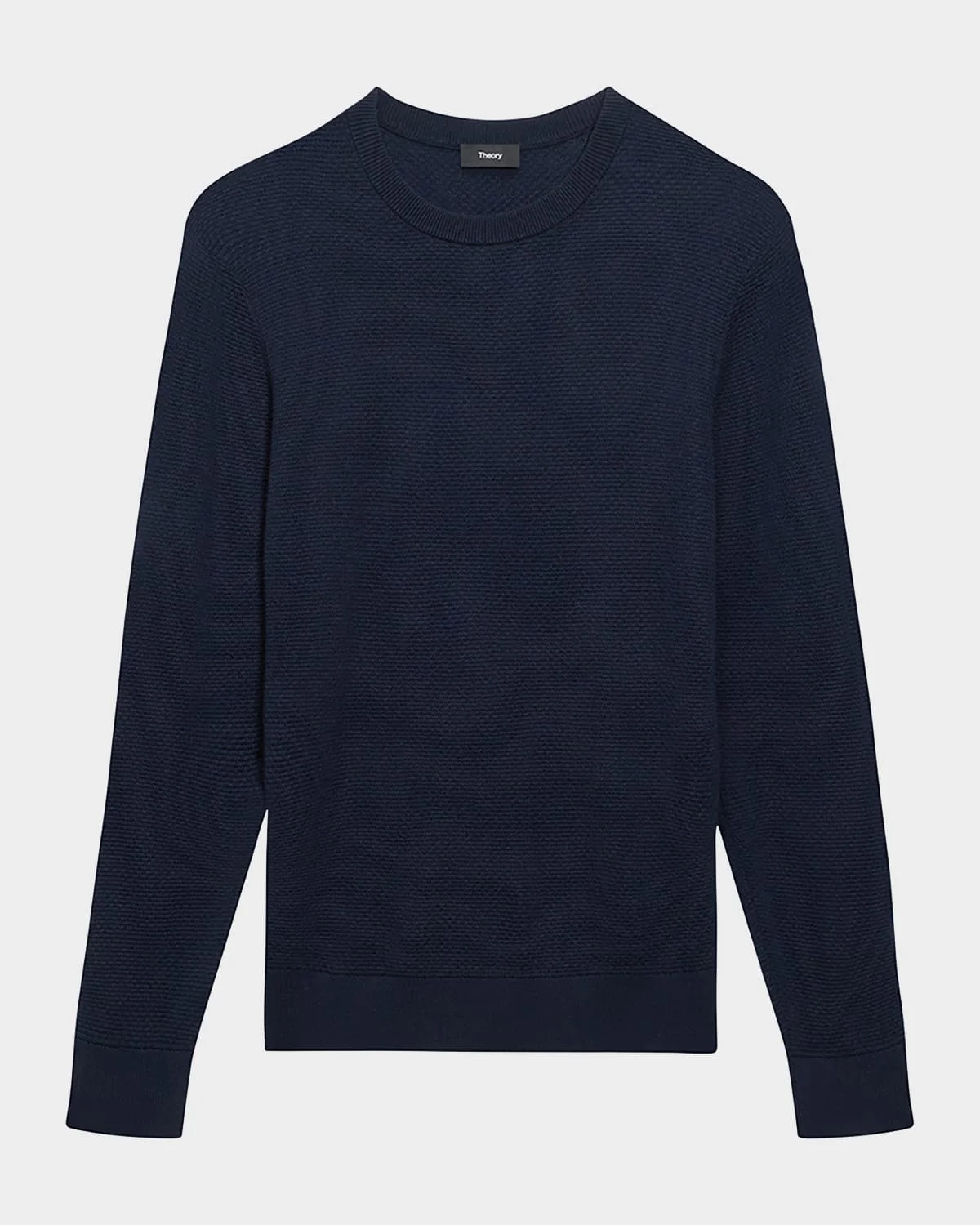 - Men's textured sweater by Theory - Crew neckline - Regular fit - Long sleeves - Banded cuffs and hem - Pullover style - Merino wool - Machine wash cold, line dry - Imported