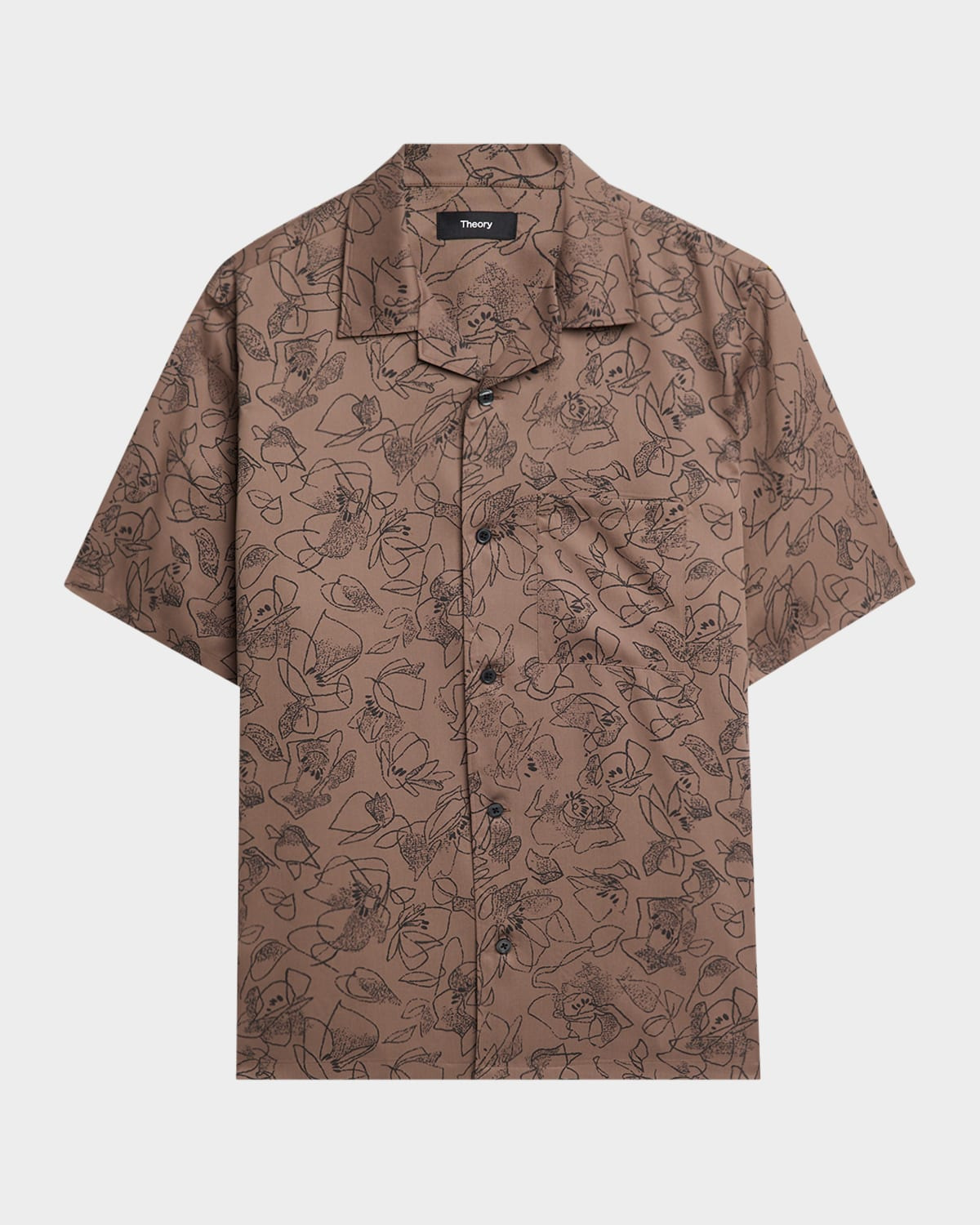 - Theory camp shirt punctuated by a stylized floral motif - Crisp, lightweight lyocell fabric is manufactured in a closed-loop process with wood pulp sourced from responsibly managed forests - Notch collar - Button placket - Functional chest pocket - Short sleeves - Straight hem - Classic fit - Lyocell - Machine wash cold, line dry - Imported