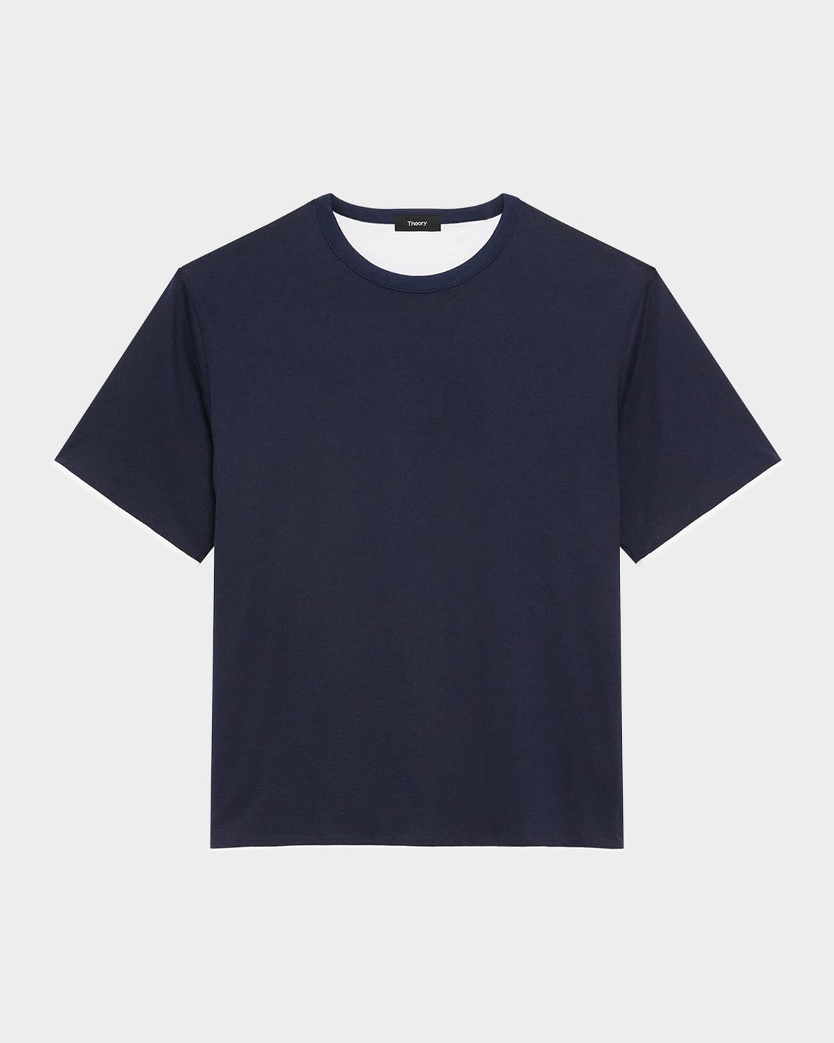 - Theory T-shirt crafted from premium pima cotton defined by a contrast double-layer design - Crew neckline - Short sleeves - Pullover style - Classic fit - Pima cotton - Machine wash cold, tumble dry - Made in Peru