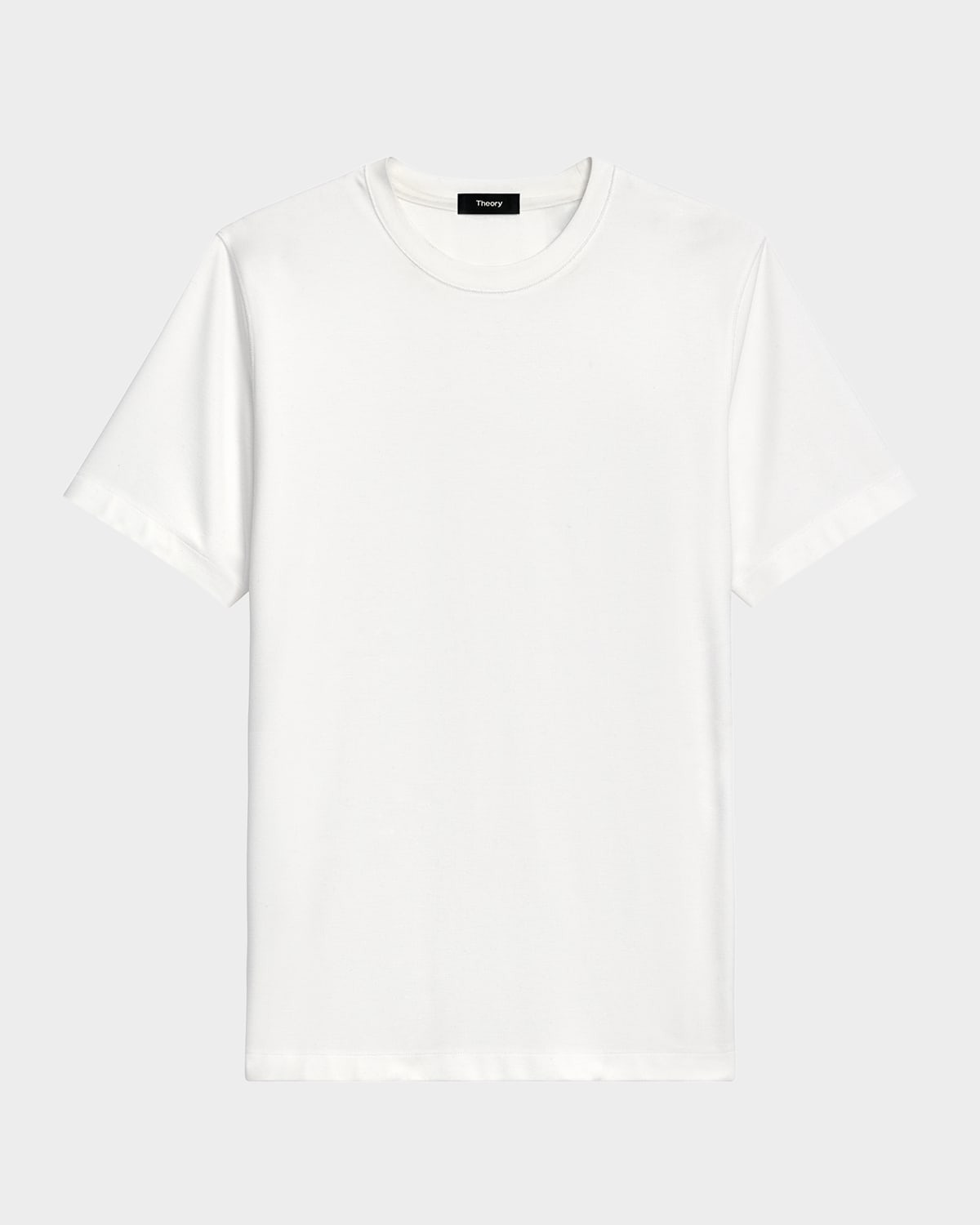 - Theory "Ryder" solid T-shirt in breathable jersey fabric - Crew neckline - Short sleeves - Regular fit - Pullover style - Viscose/polyamide/elastane - Imported - Fashioned for change: sustainable materials. Find out more - here - Model is 6'1"/185cm.