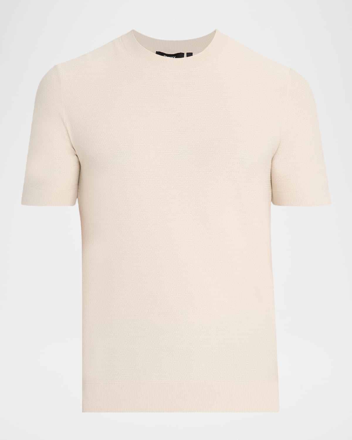 - Theory "Soris" T-shirt in a textured knit - Crew neckline - Short sleeves - Regular fit - Ribbed cuffs and hem - Pullover style - Viscose/polyester - Machine wash cold, machine wash line dry - Imported