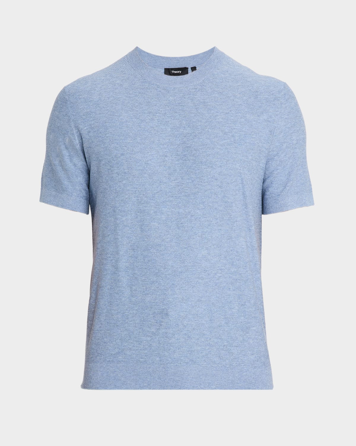 - Theory "Soris" T-shirt in a textured knit - Crew neckline - Short sleeves - Regular fit - Ribbed cuffs and hem - Pullover style - Viscose/polyester - Machine wash cold, machine wash line dry - Imported