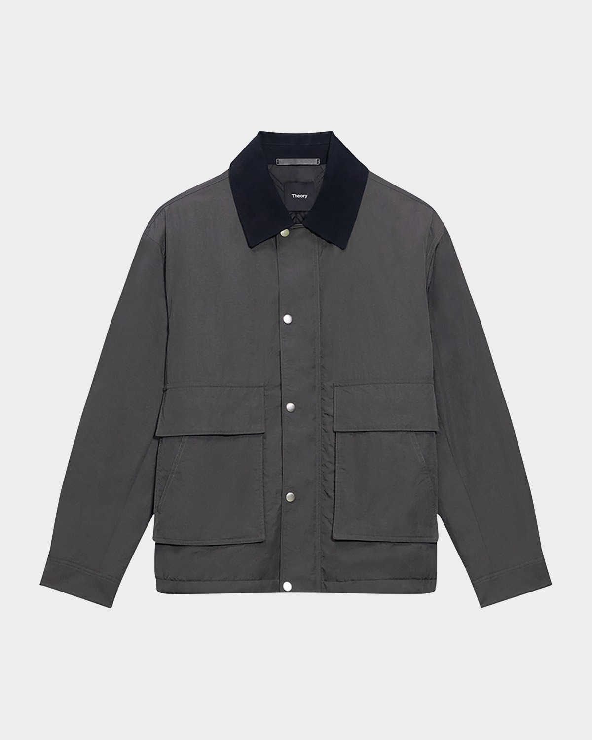 - Theory blouson jacket in tumbled nylon - Spread collar - Snap placket over center front zipper - Two front flap pockets - Long sleeves with adjustable snap cuffs - Elasticized waist - Lining: Cupro - Dry clean - Imported