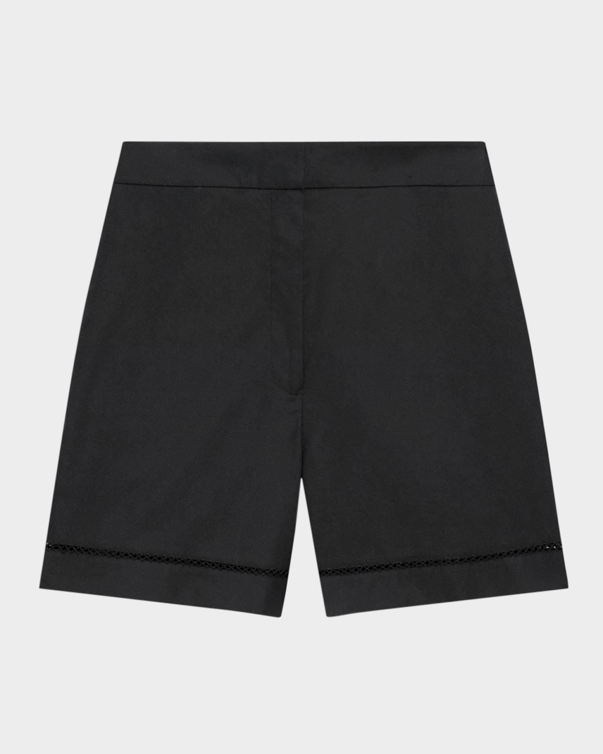 - Theory shorts with delicate embroidery - Approx. 5" inseam - High rise - Back patch pockets - A-line fit - Mid-thigh length - Hook/zip fly - Cotton/elastane - Dry clean - Imported