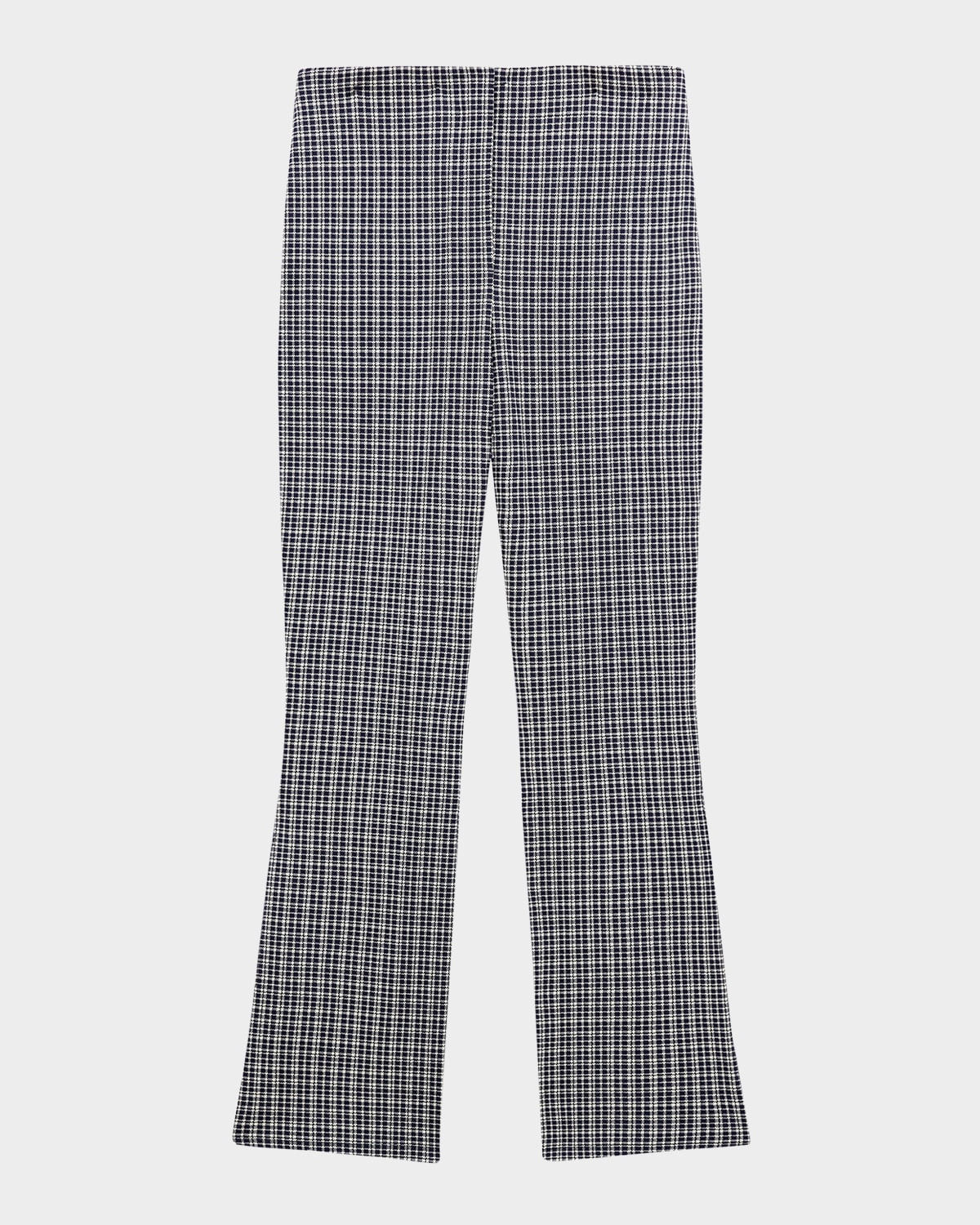- Theory woven kick-flare pants in plaid - Approx. 13" rise; 26" inseam; 35" outseam - High rise - Invisible front zip pockets - Fitted through the hip and thigh - Ankle length - Side zip closure - Nylon/polyamide/elastane - Dry clean - Imported
