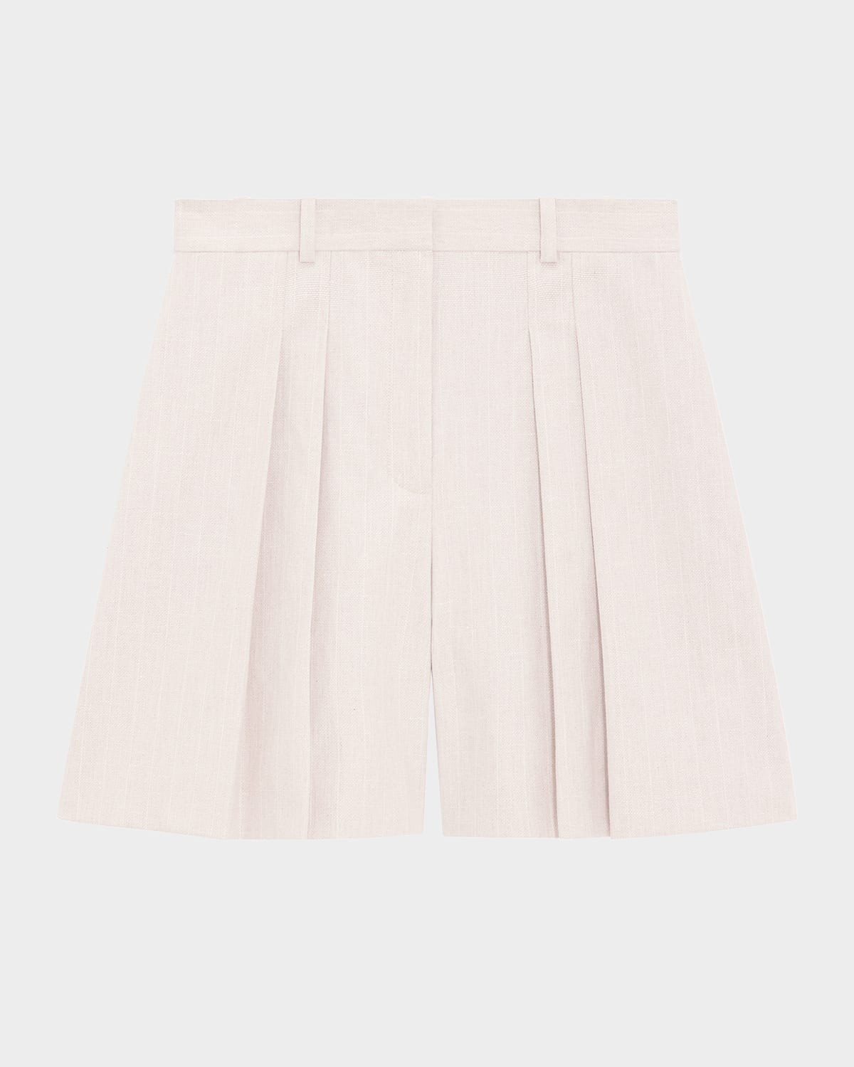 - Theory cotton-linen shorts - High rise - Pleated front - Side seam pockets; back welt pockets - Waist-hugging fit - Hook/zip fly; belt loops - Cotton/linen/elastane - Imported
