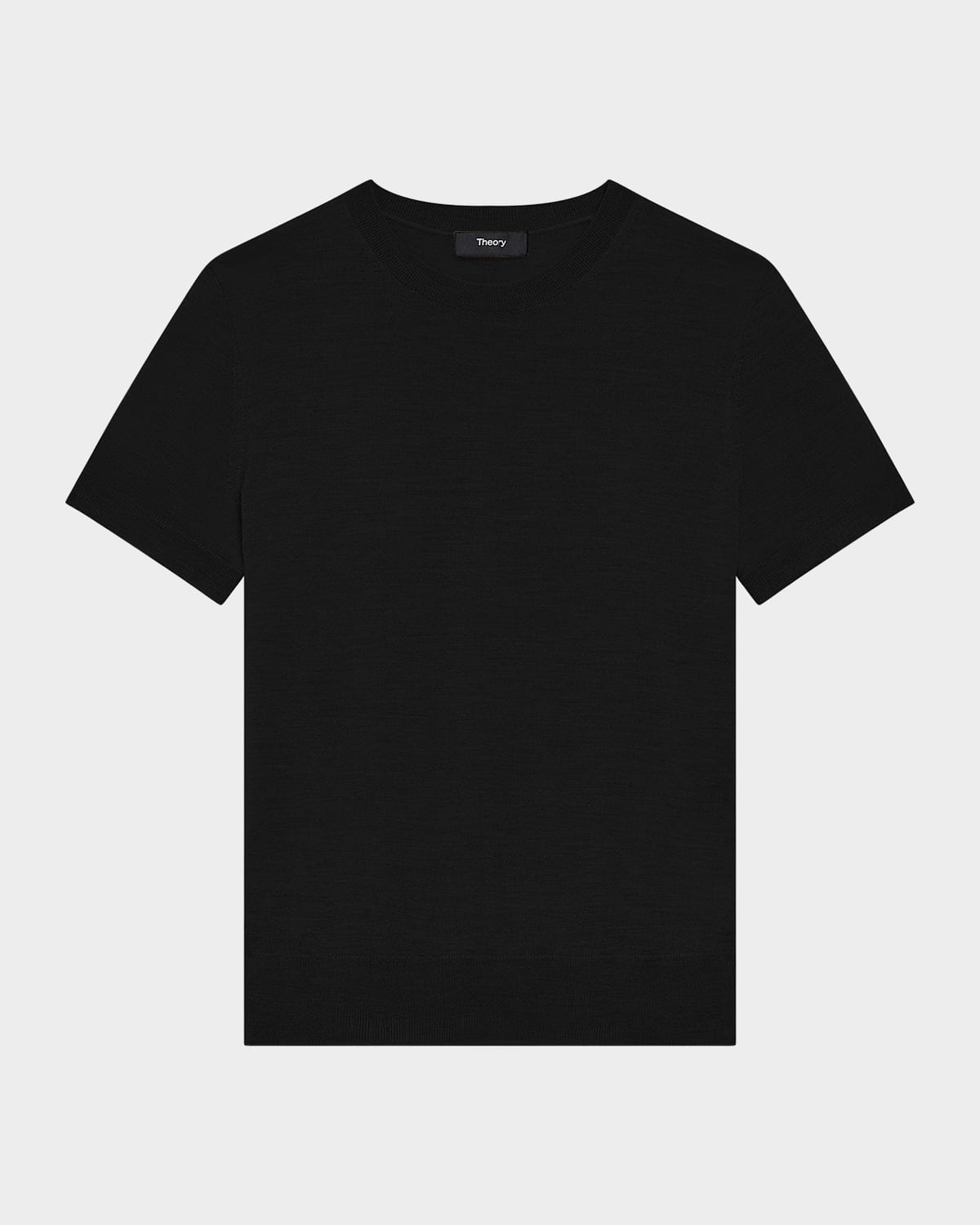 - Theory classic basic tee in Regal Wool - Crew neckline - Short sleeves - Banded cuffs and hem - Slim fit - Pullover style - Merino wool - Dry clean - Imported - Model is 5'10"/177cm.