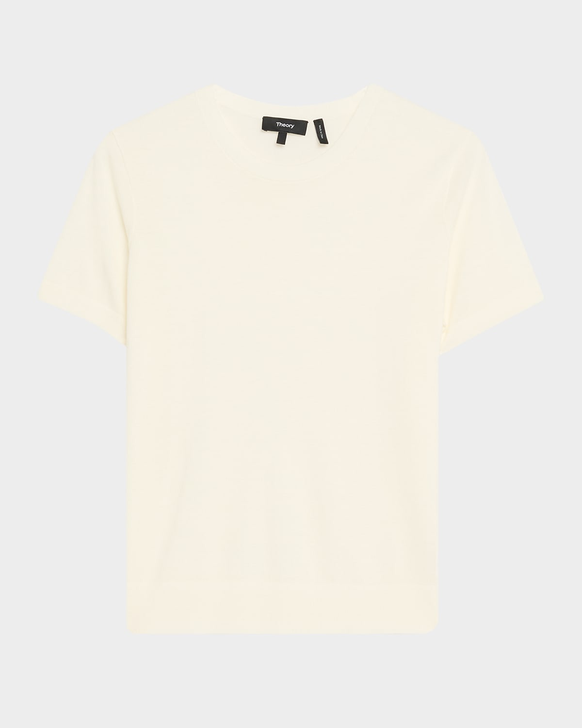- Theory classic basic tee in Regal Wool - Crew neckline - Short sleeves - Banded cuffs and hem - Slim fit - Pullover style - Merino wool - Dry clean - Imported - Model is 5'10"/177cm.