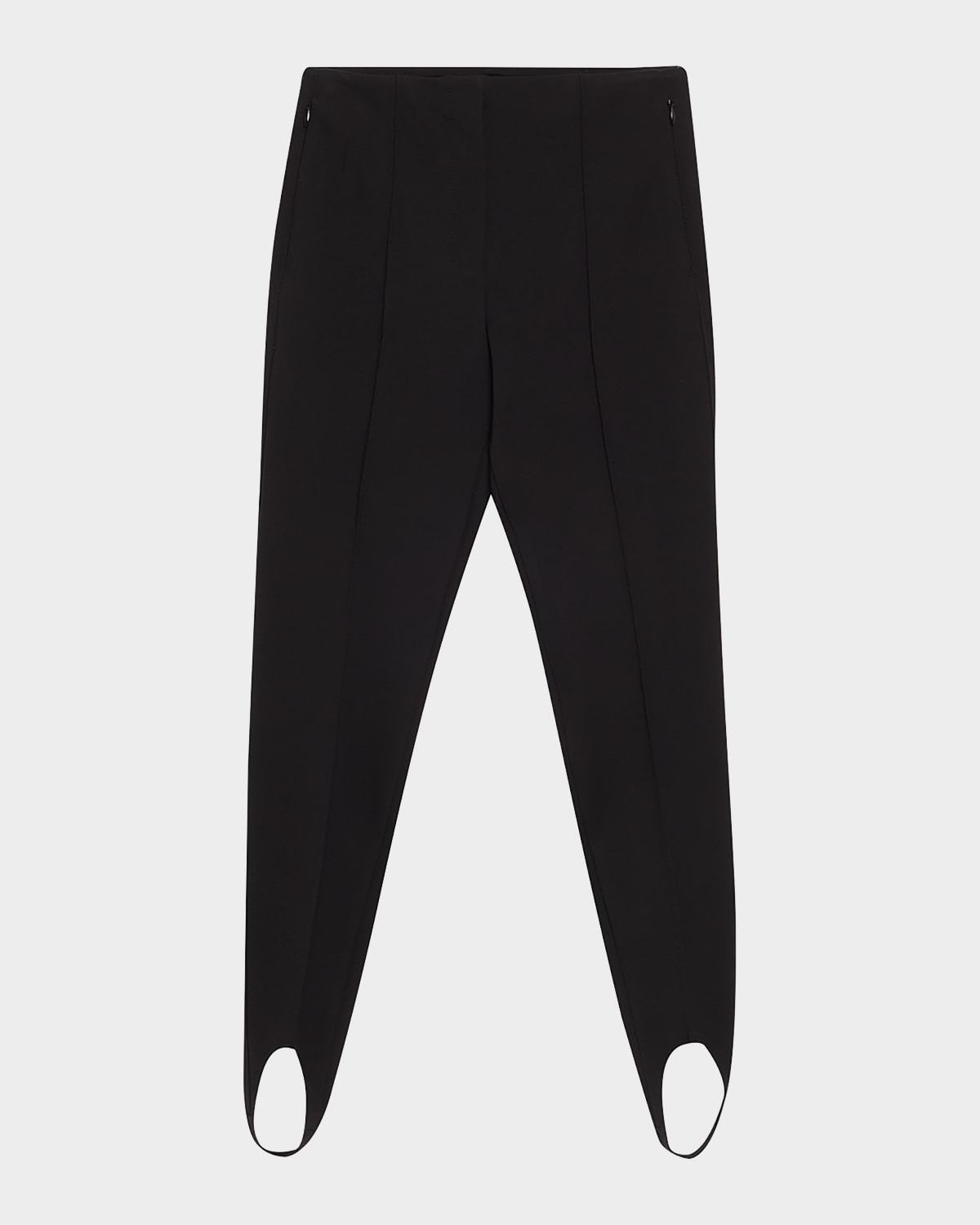 Crafted from stretch fabric, the stirrup pants by Theory feature a figureflattering silhouette that is both comfortable and slimming Approx. 11" rise; 29" inseam; 38" outseam High rise Pintuck front and back Straight legs Ankle length Pullon style with side zips Viscose/spandex Machine wash cold Made in USA from imported materials