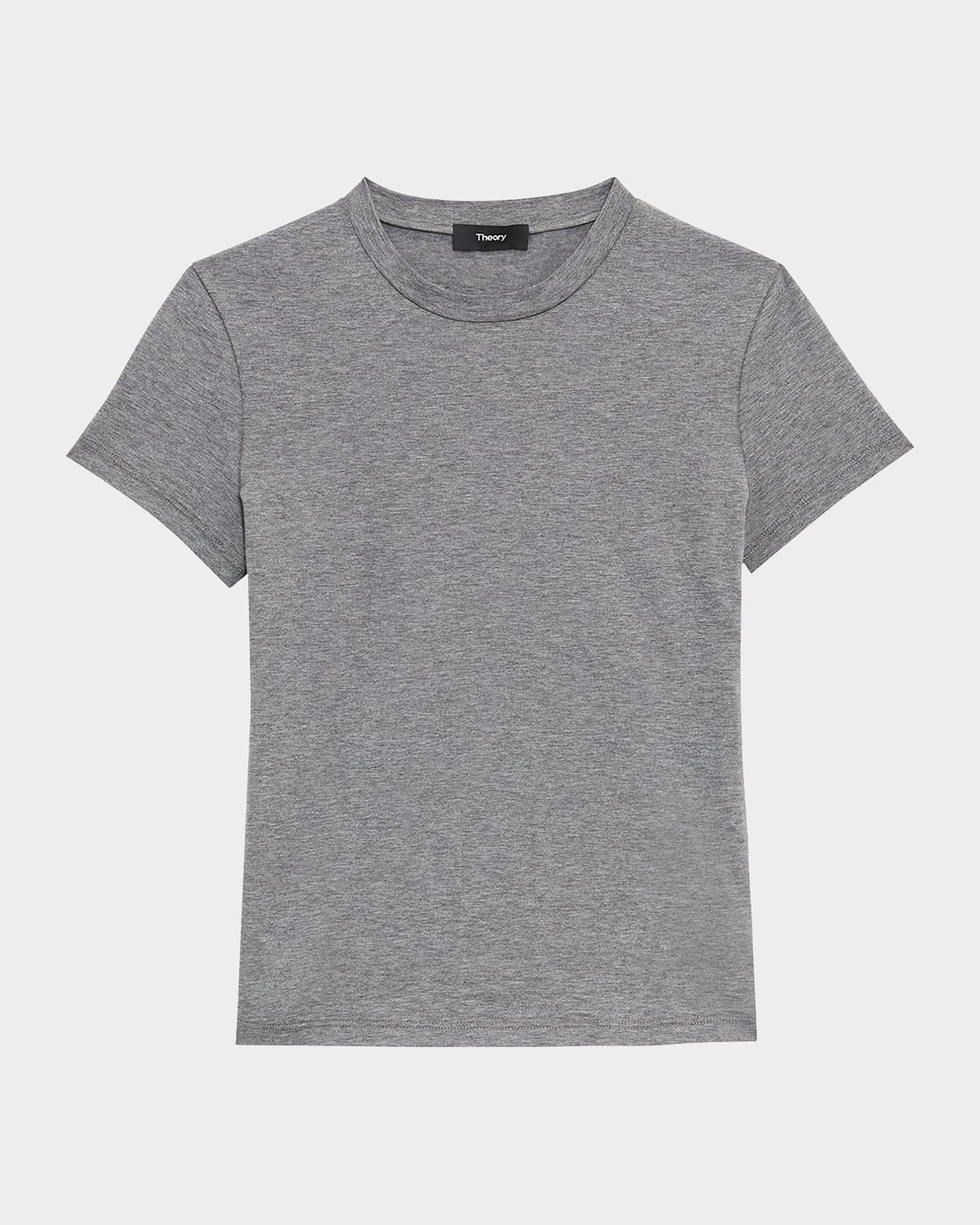 Theory tee doubleneedle topstitching along the sleeves and hem Crew neckline Short sleeves Relaxed fit Pullover style Pima cotton Made in Peru