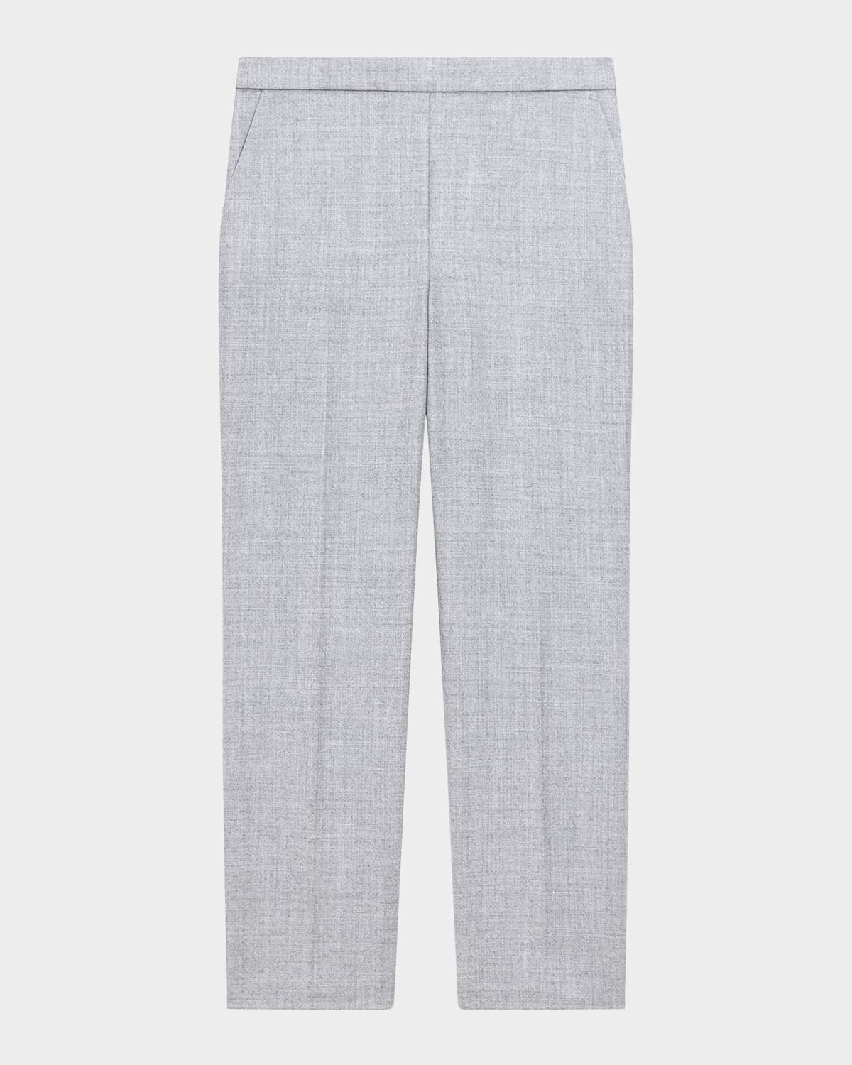 - Theory "Treeca" tailored pants in flannel - Approx. 26" inseam - Mid rise - Elasticized back waist - Side slip pockets; back welt pockets - Cropped at the ankle - Straight legs - Pull-on style - Virgin wool - Imported - Model is 5'10"/177cm.