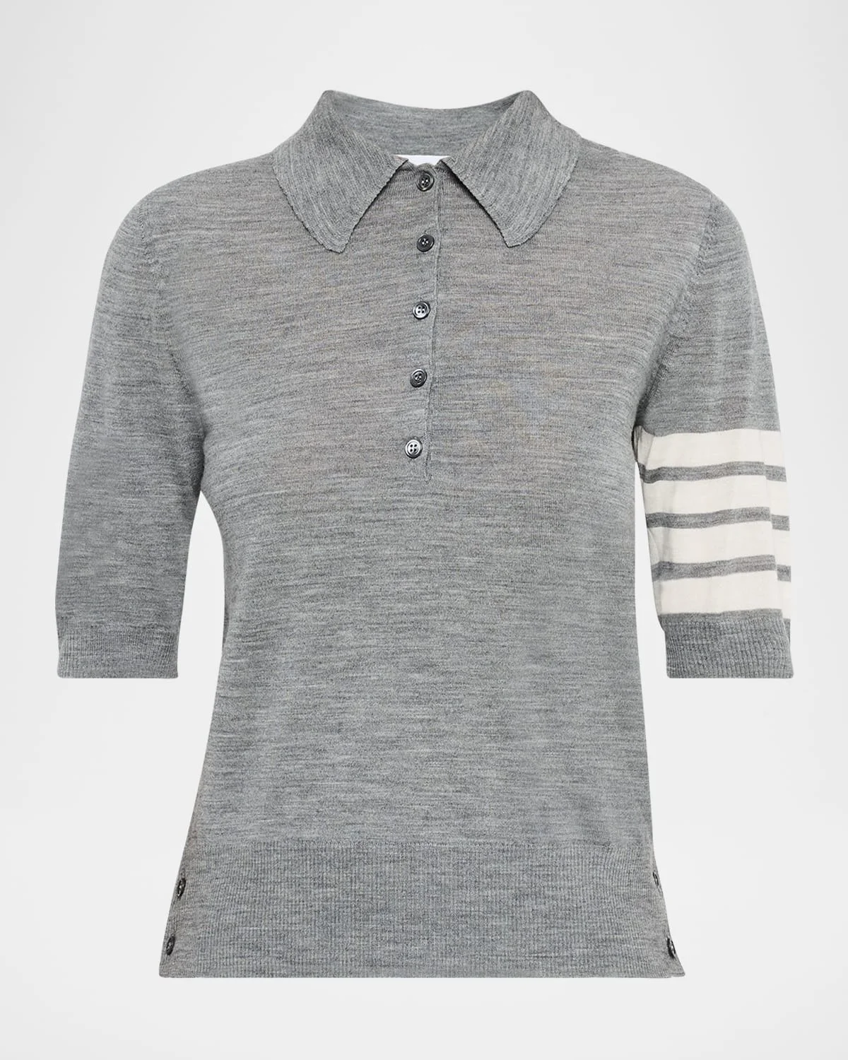 Light Grey Fine Merino Wool 4-Bar Mrs. Thom Intarsia Short Sleeve Polo
