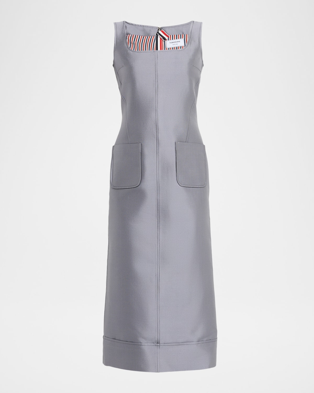 - Thom Browne Dress in - neckline - Sleeveless - Hem falls below the knee - Wool/silk - Made in Italy