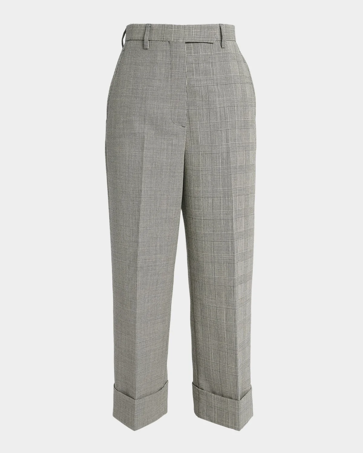 High-Rise Multi-Check Straight-Leg Cuffed Crop Pants