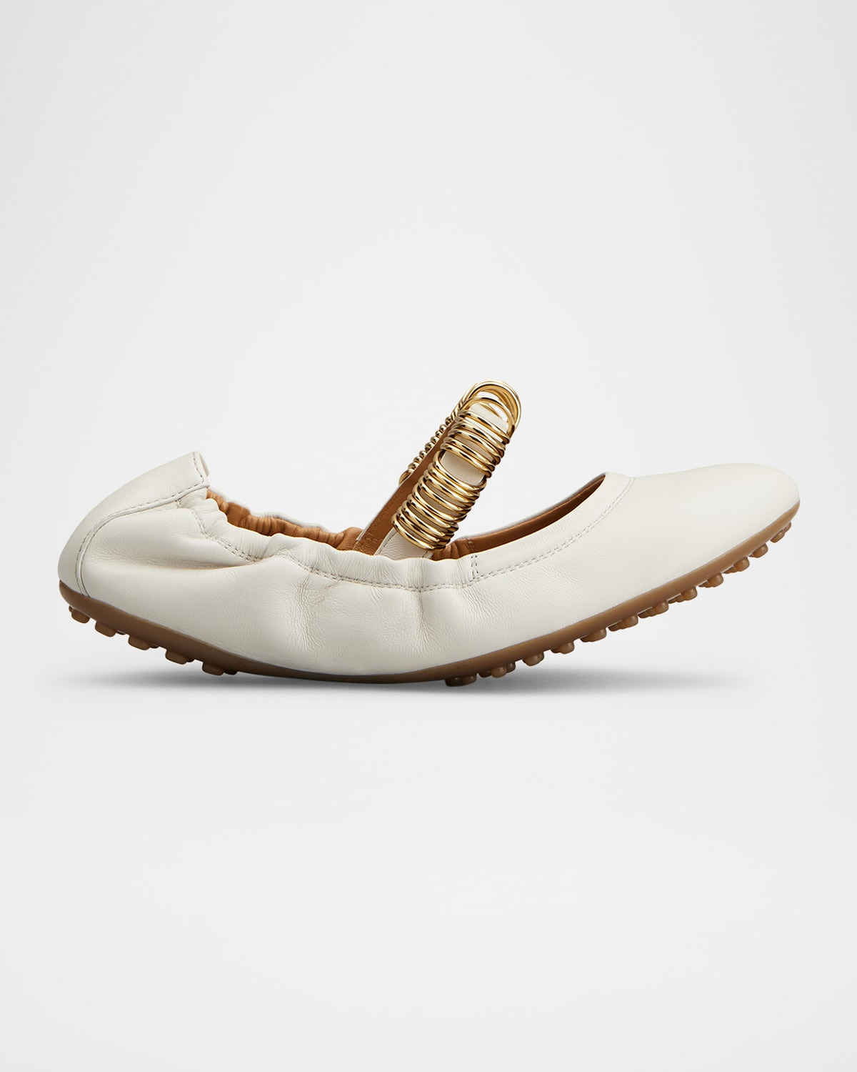 - Tod's "Cosmo" ballerina flats in soft napa leather - Flat heel - Round toe - Mary Jane strap with metal rings - Elastic collar - Slip-on style - Rubber outsole - Lining: Goat leather - Spot clean - Made in Italy