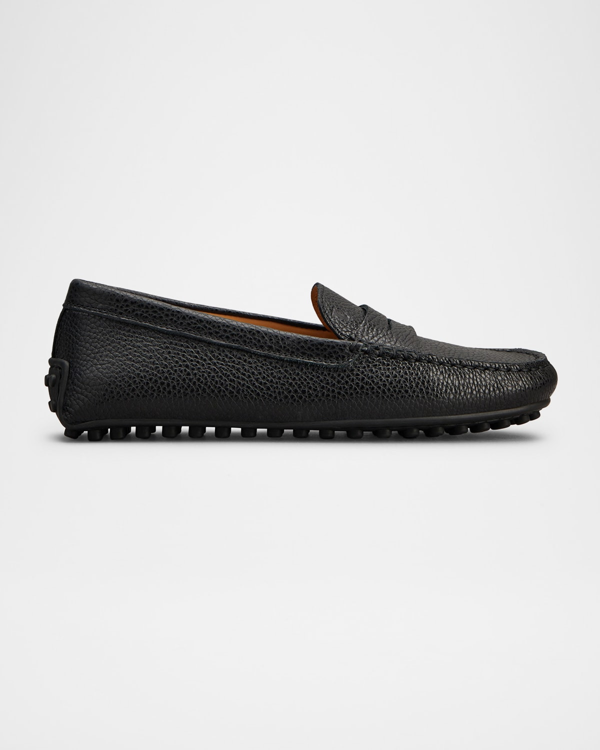 - Tod's "Gommino" moccasin driver penny loafers in calf leather with exposed handmade stitching - Flat heel - Round moc toe - Penny keeper strap at notched vamp - Slip-on style - Tongue with stamped logo - Leather insole - Distinctive pebbled heel - Maxi-pebbled rubber outsole - Made in Italy