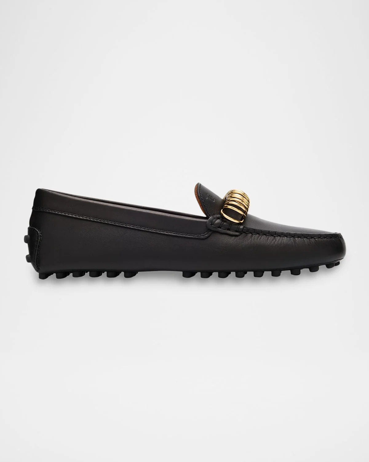 Tod's Gommino driving shoes feature exposed handmade stitching and a strap with metal ring accents Flat heel Round moc toe Notched vamp with strap Tongue with stamped logo Leather insole Slipon style Iconic outsole with embossed rubber pebbles Distinctive pebbled heel Spot clean Made in Italy