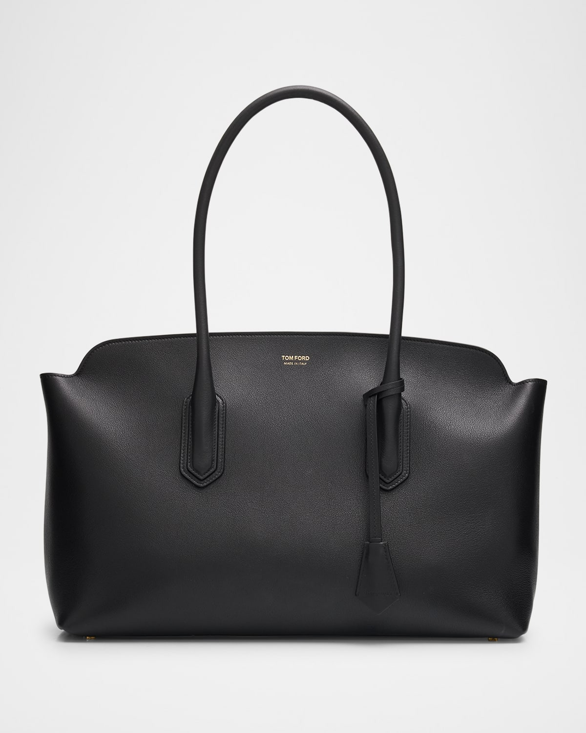 - Crafted in natural grain leather, the TOM FORD "Alexander" large shoulder bag is detailed with gold-tone padlock embellishments and embossed logo lettering - Rolled top handles - Zip top closure - Interior, one zip pocket - Lining: Leather - Trim: Leather - Approx. 9.1"H x 15.7"W x 6.3"D - Item Weight (Lbs.): 2.9 - Made in Italy