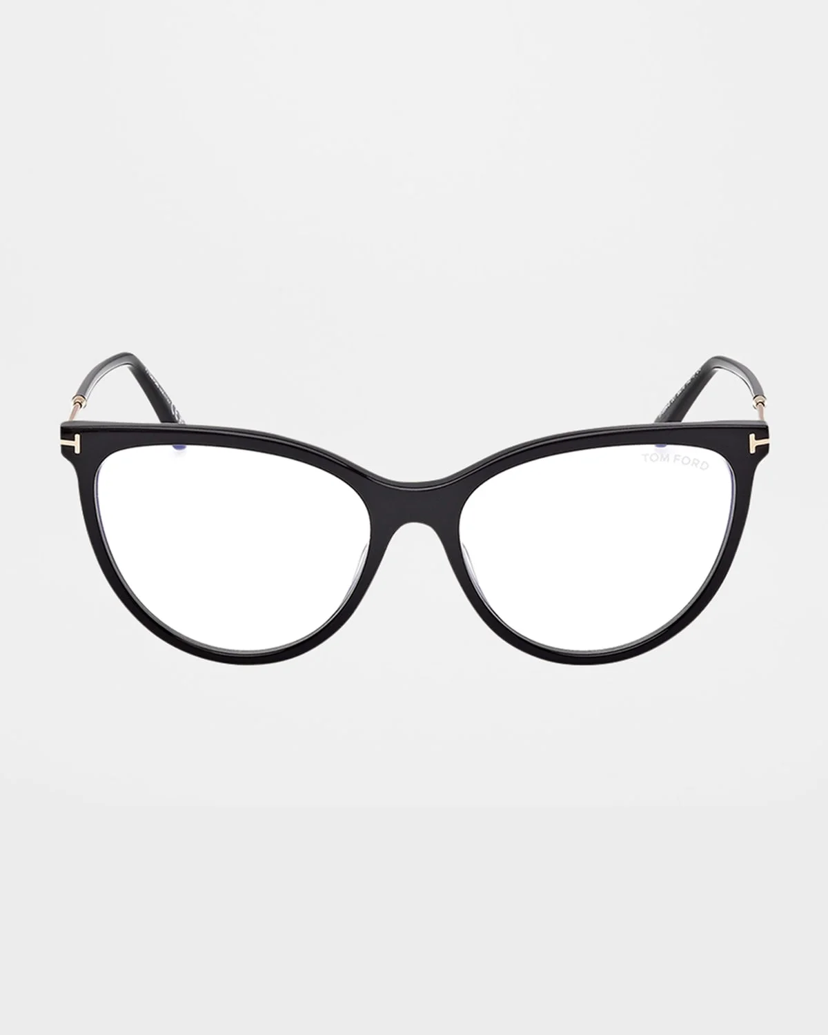 - TOM FORD "FT5994-BW" cat-eye eyeglasses - Eye/bridge/temple (in mm): 56-16-140 - Ready-to-wear clear lenses enhanced by a blue coating, able to reduce the risks related to blue light exposure from LED screens - Saddle nose bridge - Signature T temples - Thin, tapered arms - Acetate - Made in Italy - Proposition 65 warning for California residents