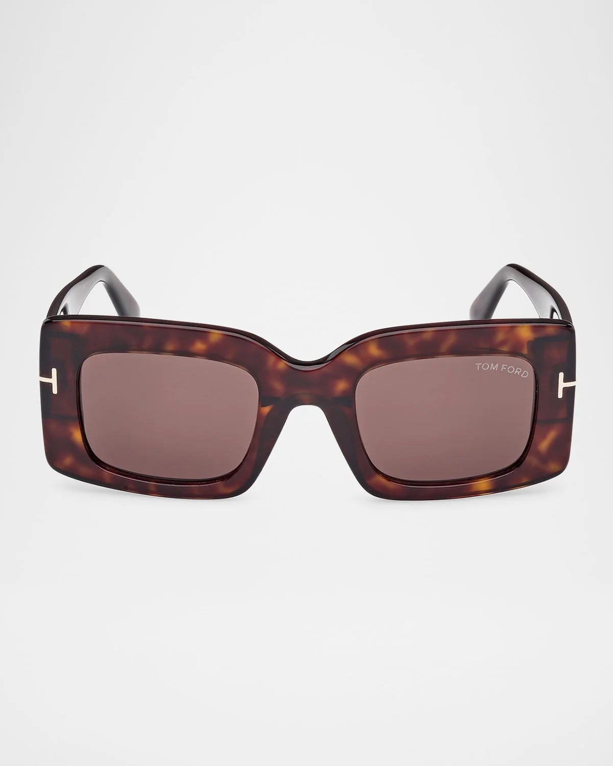 - TOM FORD "Brigitta" rectangle sunglasses in acetate - Lens/bridge/temple (in mm): 50-24-140 - Solid-color lenses - T logo hinge - Wide, tapered arms - 100% UVA/UVB protection - Made in Italy - Proposition 65 warning for California residents